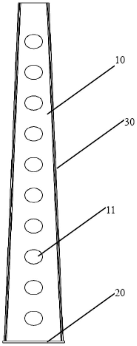 一种光伏支架的立柱结构和固定装置,包括腹板、底板和两翼板;该两翼板固定于腹板两相对侧,该底板固定于腹板和两翼板底端;其特征在于:该腹板的宽度设置成从上到下逐渐增大,且腹板上设有若干通孔。本实用新型的立柱,应力分布比较均匀,并且在达到同样的抗弯性能的情况下,重量更小、降低成本,提高的产品的竞争力。