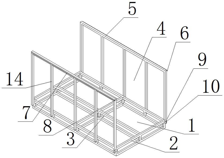 本实用新型公开了一种铁托结构,包括支撑底座、防护栅板和固定柱,所述支撑底座包括底座边框和十字支撑架,所述底座边框固定在支撑底座的边缘,所述底座边框是双层结构,且底座边框通过焊接成矩形结构,所述底座边框的内部设置有十字支撑架,所述十字支撑架延伸到底座边框上,且十字支撑架通过焊接固定安装在底座边框的表面,所述支撑底座的两侧分别设置有防护栅板,所述防护栅板的一端是设置有横杆;采用铁托使运输集装箱用海运更稳妥,使海运时集装箱放置更稳固,码放更合理,设置固定槽,使铁托双层放置时,增加集装箱牢固,海运时货船上下颠簸,防止上层集装箱倒下,使上下层集装箱放置更牢靠,防止损坏集装箱内部的货物。