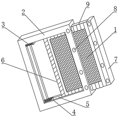 本实用新型公开了环保型防潮家居木门,包括门体,所述门体由芯板、保温板和防潮阻燃板组合而成,所述门体顶部、底部和一侧的外围均通过铆钉连接有内框架,所述内框架的外围设置有外框架,所述外框架的内部一端的顶部和底部均设置有挤压块,所述外框架的一侧开设有安装孔,所述门体的内部设置有芯板,所述芯板的外侧设置有保温板,所述芯板的内侧设置有防潮阻燃板,所述保温板的内部设置有中空腔。本实用新型效果显著,操作简单,经久耐用,能够满足工作需求,适合普遍推广。