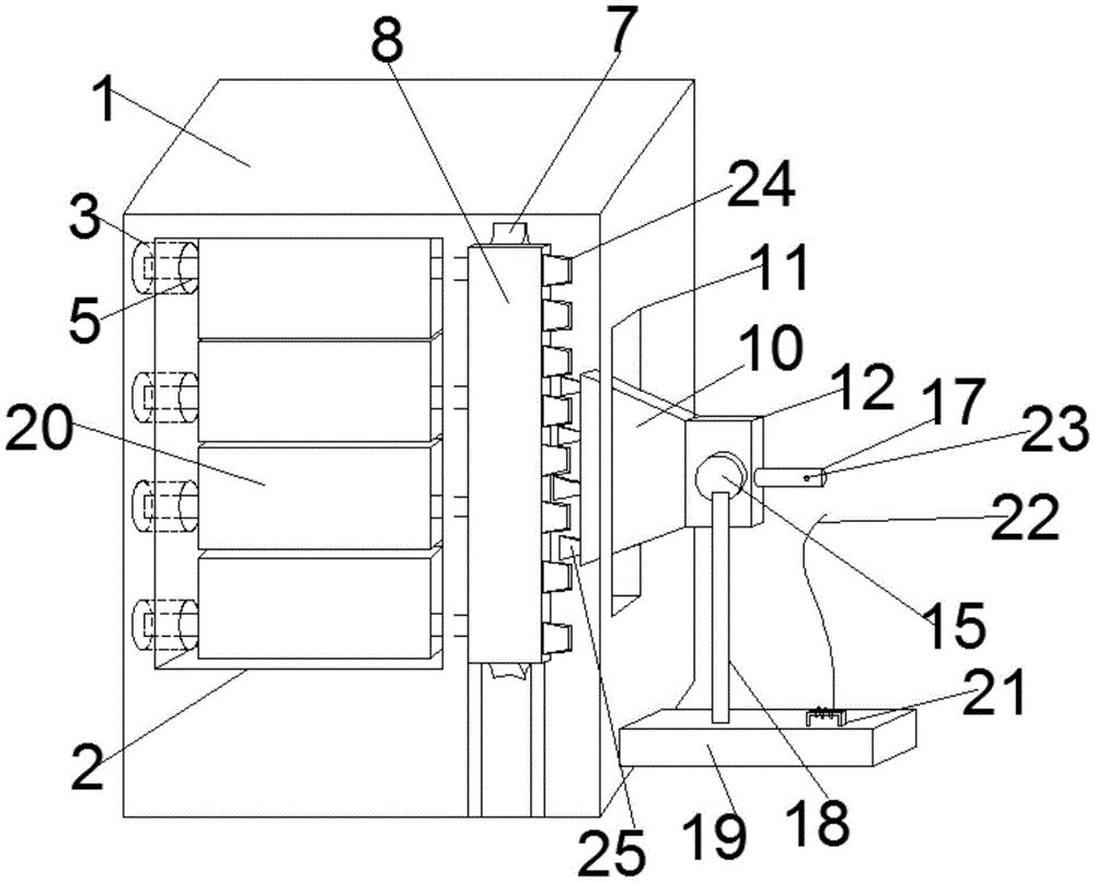 本实用新型公开了一种智能高分子基新型材料透气窗,包括窗框体,所述窗框体上开设有窗槽,所述窗框体为空腔结构,所述窗槽槽壁一侧开设有若干个圆槽,所述穿槽槽壁另一侧开设有与若干个圆槽数量相同的圆孔,所述窗槽槽内放置有与圆孔数量相同的圆杆,所述圆杆一端分别滑动贯穿相对应的若干个圆槽,且所述圆杆一端分别与相对应的若干个圆槽相接触,所述圆杆另一端分别滑动贯穿相对应的所述圆孔。有益效果:竖板升降时,第一齿条与圆形齿条捏合,因此带动齿盘做同向转动,最终会带动圆杆上的窗叶进行开合运动,穿板在运动时,穿板在通过穿杆在穿孔内转动,方便调整窗叶之间的距离,从而实现了更加省力的作用。