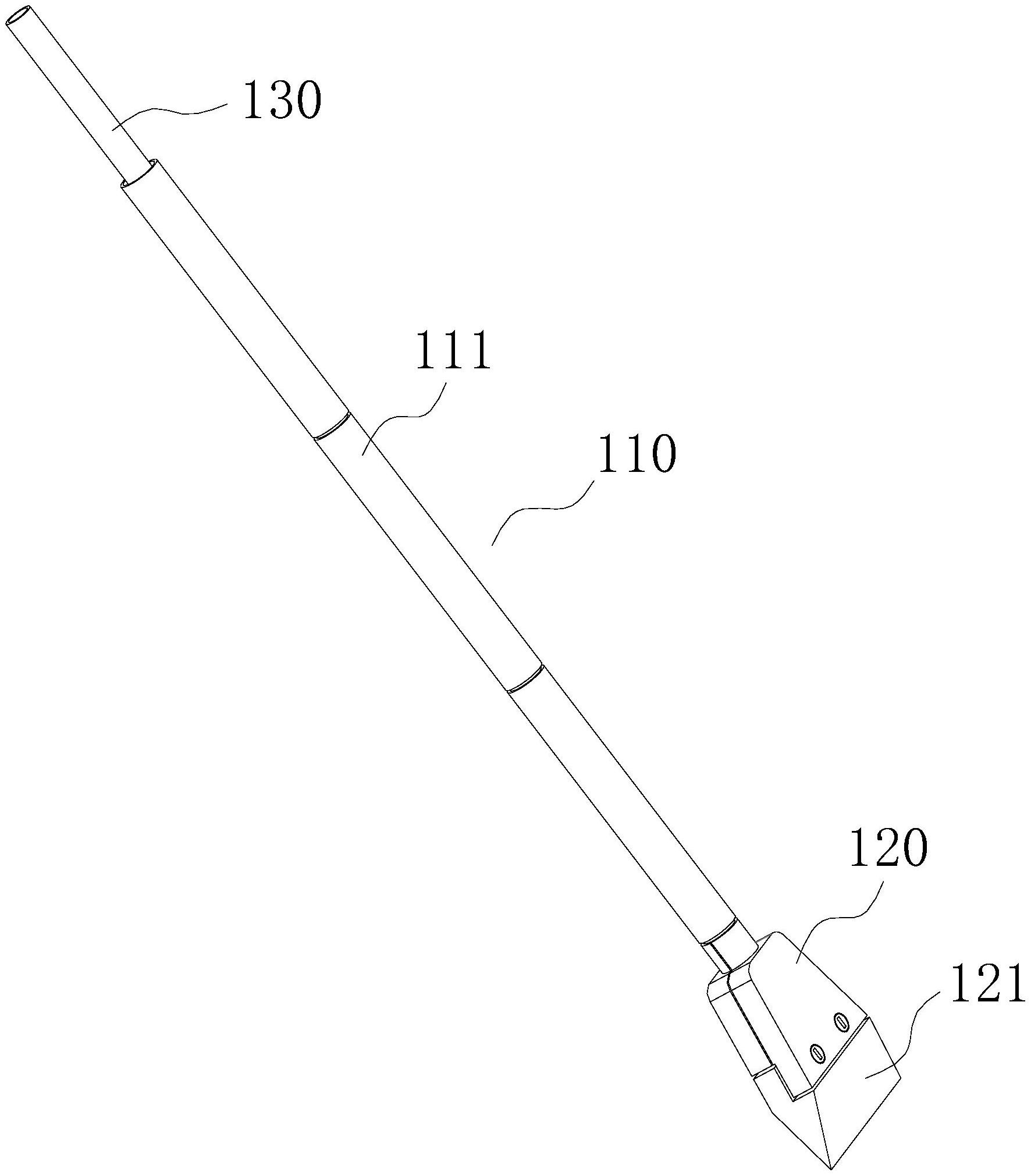 本实用新型涉及生产釜内壁清理技术领域,具体地说,涉及一种活动式清理铲,包括操作杆,所述操作杆的长度可调;铲体,连接于所述操作杆的一端处且用于对釜壁进行清理;工作人员可通过对操作杆的长度的调节,能够较佳地适应不同尺寸的生产釜的清理情况;能够较佳地对生产釜的釜壁的不同位置处进行清理,便于工作人员的使用,同时进一步提高了对釜壁的清理效果。