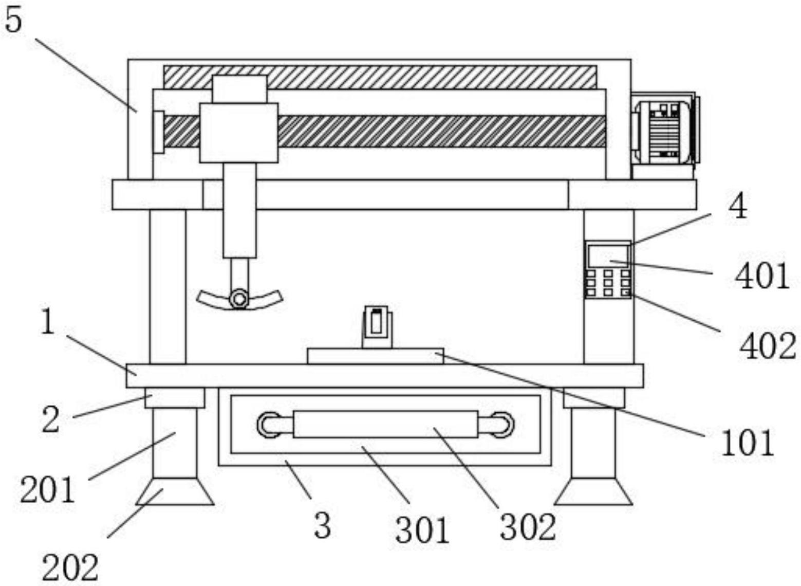 本实用新型涉及鲍鱼肉提取技术领域,尤其涉及鲍鱼肉提取装置。其技术方案包括层板、顶板和固定板,层板顶部固定连接有切割台,层板顶部固定连接有顶板,顶板内部活动连接有丝杆,丝杆外围螺纹安装有螺纹套,螺纹套底部固定连接有电动伸缩板,电动伸缩板底部活动连接有切刀,丝杆一侧固定连接有电机,电机外围固定连接有机箱,切割台顶部固定连接有固定板。本实用新型通过在层板顶部固定连接有切割台,当装置进行使用时,工作人员启动电机带动丝杆进行旋转,此时可通过螺纹套在丝杆外围进行移动,通过螺纹套带动切刀对鲍鱼表面进行切除,实现鲍鱼的壳肉分离,提升了装置使用的便捷效果。