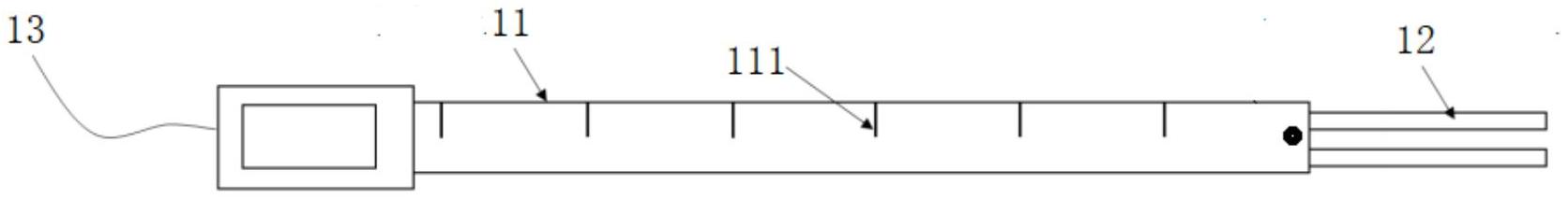 本实用新型涉及一种发酵物质电阻率检测装置,包括:探杆;所述探杆,包括探杆主体和设置于所述探杆主体一端的探头;所述探头,包括用于采集发酵物质的电阻率信号的湿度探针;所述探杆主体,外表面具有用于指示所述探杆置于发酵池中深度的刻度,内部集成有与所述探头电连接的电路板;所述探杆主体的另一端设置有通讯接口,所述通讯接口与所述电路板连接。本方案,能够提高发酵池中发酵物质的电阻率检测的实时性,降低人工成本,保证白酒酿造的质量。