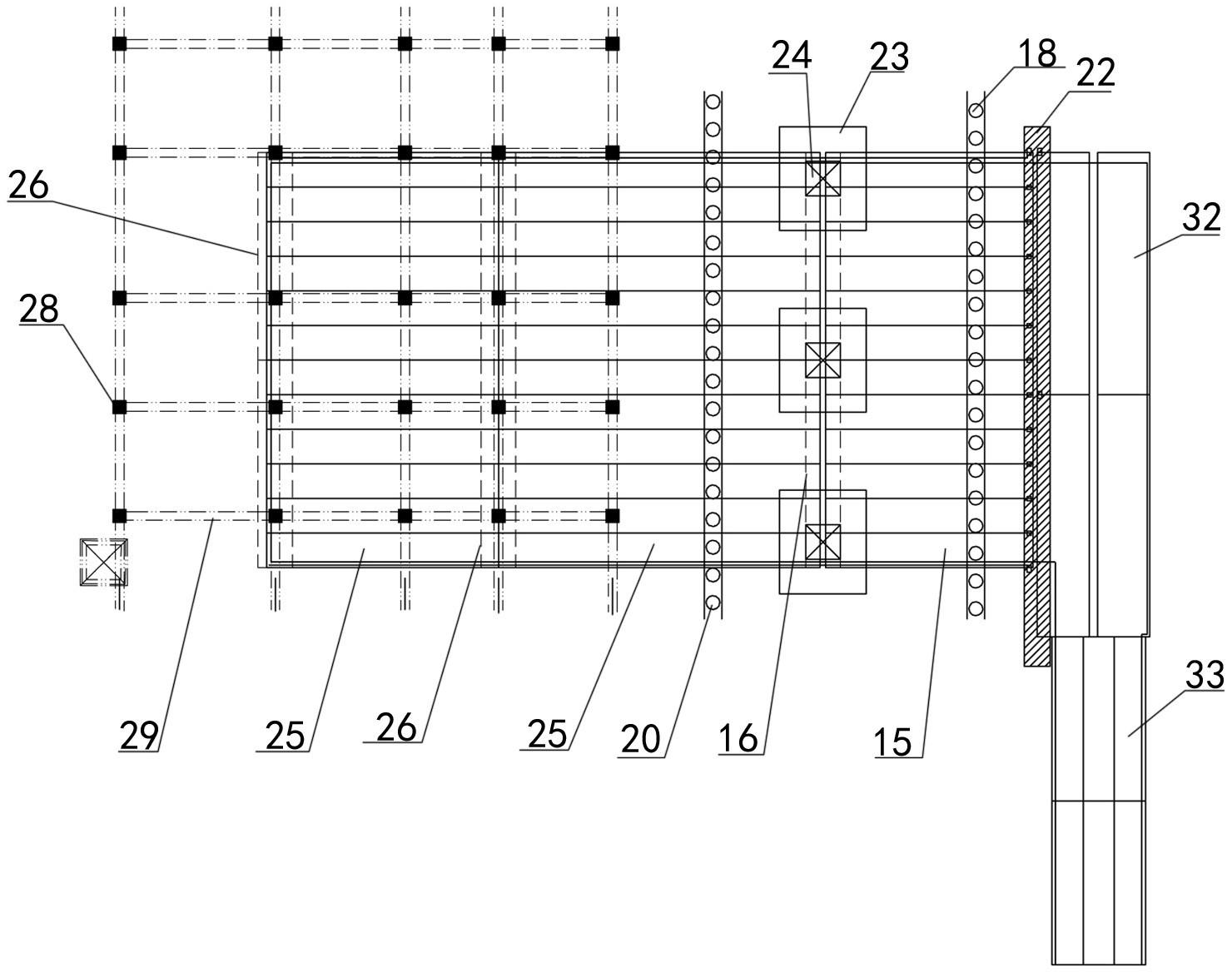 一种模块化路基箱、钢栈道平台结构及其施工方法,模块化路基箱包括路基箱钢梁、底板、顶板、加劲肋板和端封板,钢栈道平台结构包括模块化路基箱、基坑结构和各阶段支撑结构。施工方法为分阶段施工法。本发明打通了楼内外的运输生命线,保证了现场物料运输,成为结构按期顺利施工的前提条件,验证了临时施工钢栈道的合理性。选用模块化构件,大幅减少了现场工作量,设置模块化临时施工钢栈道,打通了结构的运输通道。模块化构件可重复利用,实际可操作性和借鉴价值较大,符合我国建筑装配化的推广和应用,为今后同类工程提供了一种新的施工思路,具有推广应用价值。
