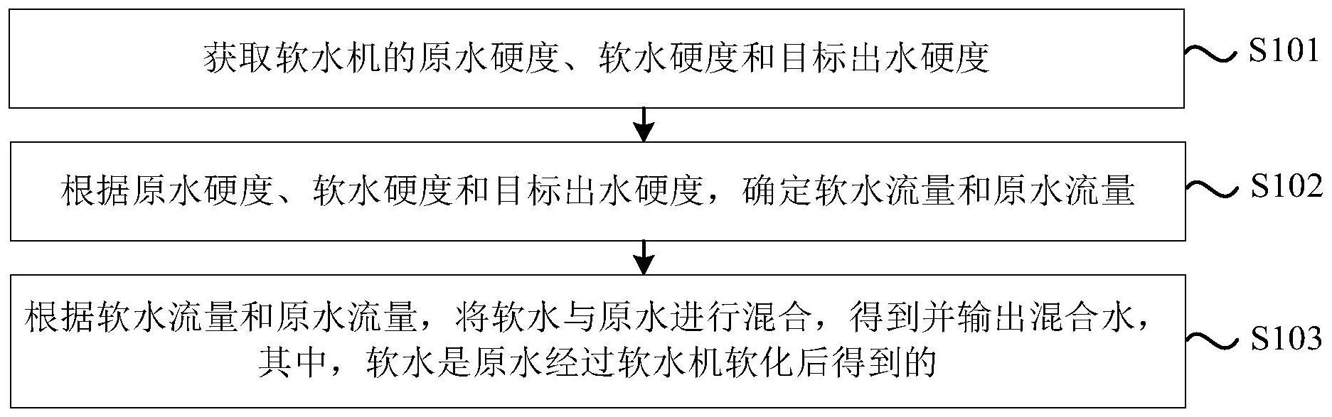 本发明实施例公开了一种软水机的控制方法、装置、软水机及存储介质。该方法包括:获取软水机的原水硬度、软水硬度和目标出水硬度;根据原水硬度、软水硬度和目标出水硬度,确定软水流量和原水流量;根据软水流量和原水流量,将软水与原水进行混合,得到并输出混合水,其中,软水是原水经过软水机软化后得到的。通过本发明实施例的技术方案,能够根据实际的水质硬度需求确定软水机的软水流量和原水流量,控制软水机输出的混合水的水质硬度,提升软水机的性能。