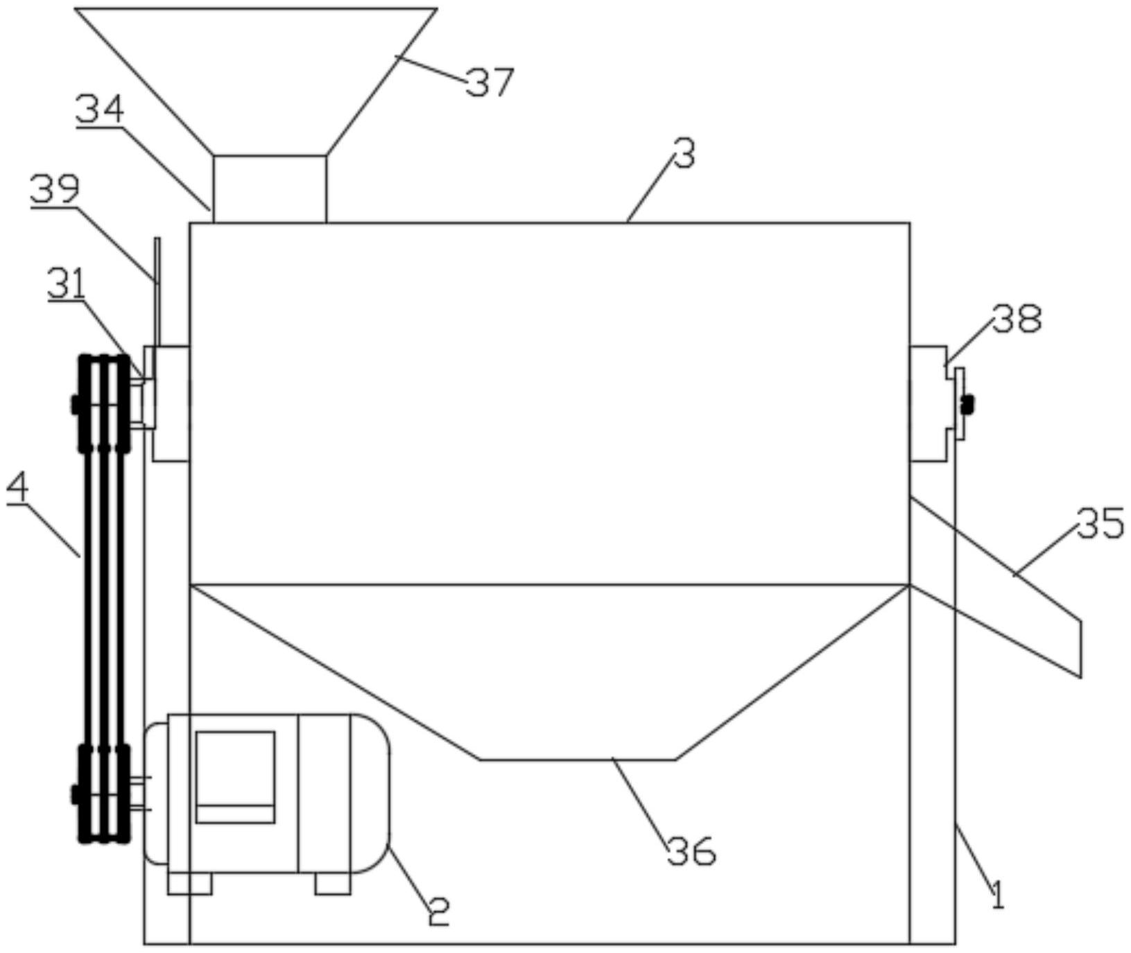 本实用新型公开了一种草莓打浆机,包括机架、打浆器及驱动电机,打浆器及驱动电机均设置于机架上,驱动电机通过传送带与打浆器的转动杆连接,所述转动杆通过轴承座固定于打浆器的中心轴上;所述转动杆上间隔、错位排列有多个桨片,所述打浆器内沿轴向套装有一筒状的第一过滤筛网,该第一过滤筛网设置于所述桨片的外围;所述打浆器的一端上方设置有入料口,打浆器的另一端下方设置有草莓渣出口,所述打浆器的底部设置有草莓浆液出口;当所述驱动电机驱动所述转动杆转动时,所述转动杆的转动力驱动草莓向草莓渣出口一端移动,同时,被第一过滤筛网过滤后的草莓浆液自草莓浆液出口排出。本实用新型可提高草莓浆液的均匀度及草莓的利用率和打浆速率。