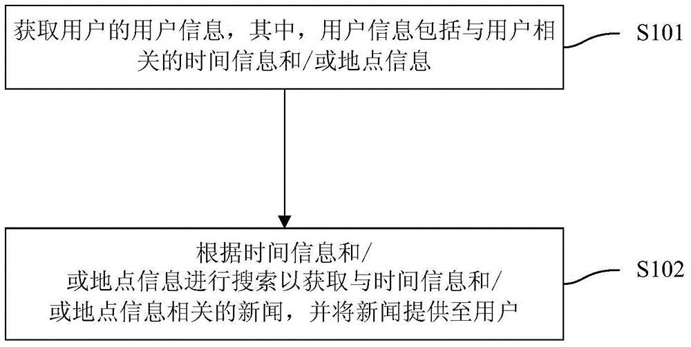 本发明实施例公开了一种新闻搜索方法,包括:获取用户的用户信息,其中,用户信息包括与用户相关的时间信息和/或地点信息;以及根据时间信息和/或地点信息进行搜索以获取与时间信息和/或地点信息相关的新闻,并将新闻提供至用户。本发明实施例的方法通过用户的用户信息(如出生时间和/或出生地点等)即可获取到相关新闻,无需用户在搜索框中输入相关信息,减少了用户的操作步骤,提高了用户的好感度,提升了用户体验,且能够为用户提供用户感兴趣的与用户信息相关的新闻。本发明还公开一种新闻搜索装置。