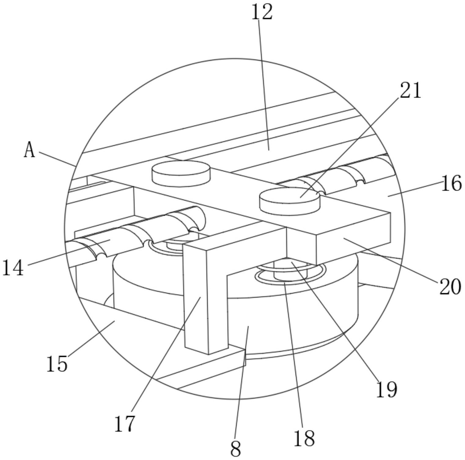 本实用新型公开了一种彩票防伪标签识别设备,包括底板和检测头,所述底板的上表面固定连接有支撑板,支撑板的顶部固定连接有壳体,壳体的底部开设有通孔,且检测头位于通孔的上方,所述壳体的一侧内壁固定连接有电机,所述壳体的一侧内壁转动连接有螺纹杆,且电机输出轴的一端与螺纹杆相固定,所述螺纹杆的外侧固定连接有滚轮,所述壳体的底部内壁转动连接有清理盘。本实用新型不仅能够通过清理盘对检测头上的镜头进行清理,提高了装置的清理效果,而且能够通过挡板对位于壳体内部的检测头进行防护,提高了装置的防护效果,还能够通过挡块对定位柱移动的距离进行限制,提高了装置的限制作用。