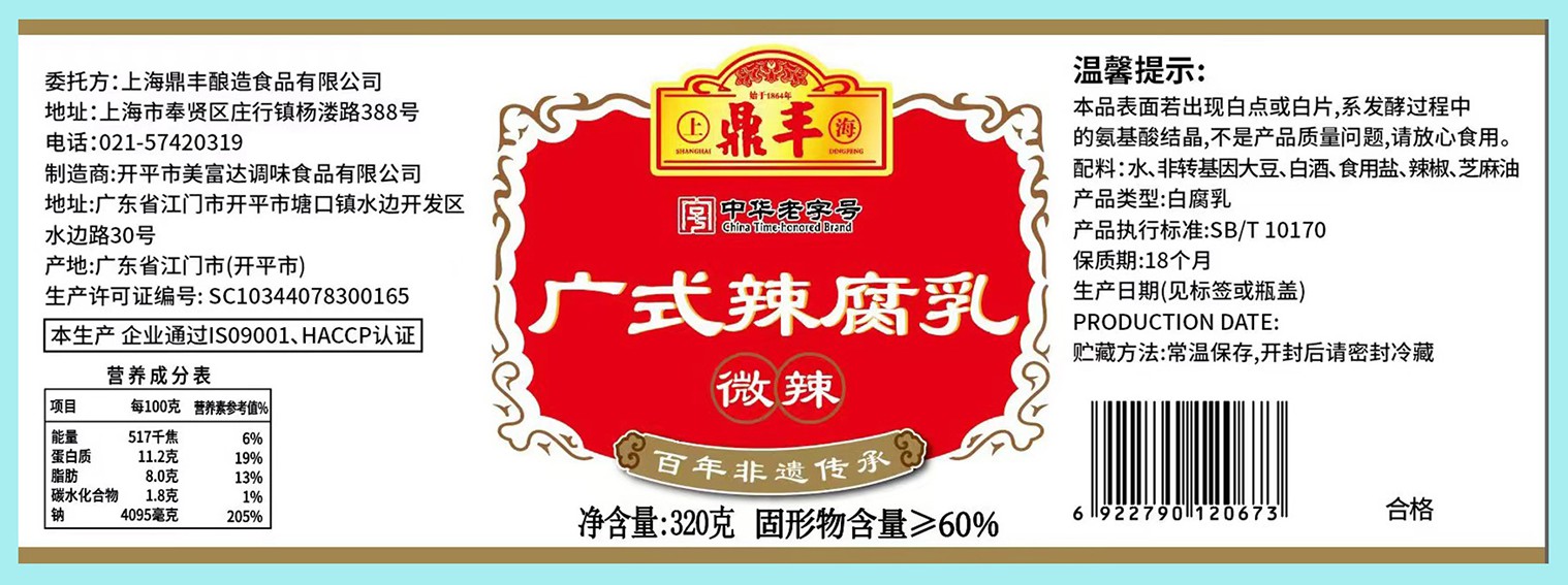 | 申请人名称 | 上海鼎丰酿造食品有限公司 |