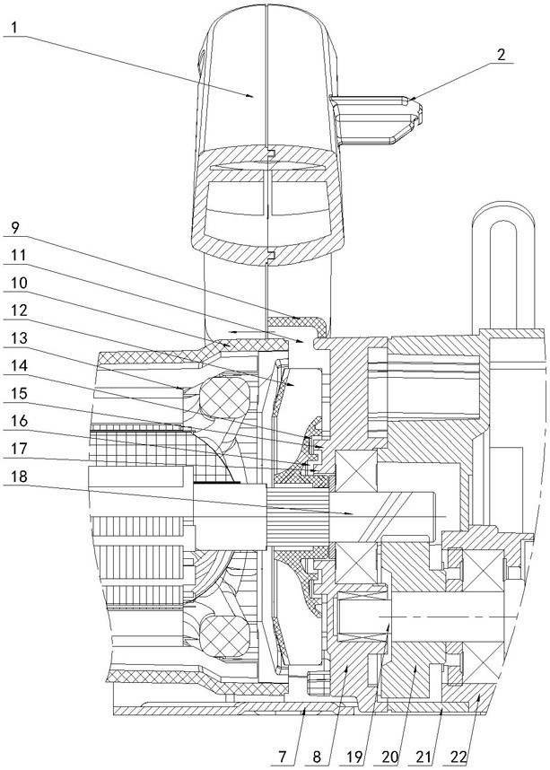 本实用新型公开了一种手持式电圆锯,包括手柄、机壳、电机、风扇、中间盖、头壳、底板、锯片、传动机构,所述风扇的端面对应设有第一防尘槽和第二防尘槽,中间盖上对应设有第一防尘圈和第二防尘圈,第一防尘圈和第二防尘圈与相对的第一防尘槽和第二防尘槽相互交叉配合,使第一防尘圈与第一防尘槽、第二防尘圈与第二防尘槽形成双迷宫式防尘结构,在机壳与中间盖之间设有与风扇相对应的排风口,手柄上设有改变排风口出风方向的导风挡片,使冷却风改变方向吹向机壳。采用上述结构后,具有结构简单合理、操作使用方便、防尘散热效果好、工作稳定可靠、使用寿命长等优点。