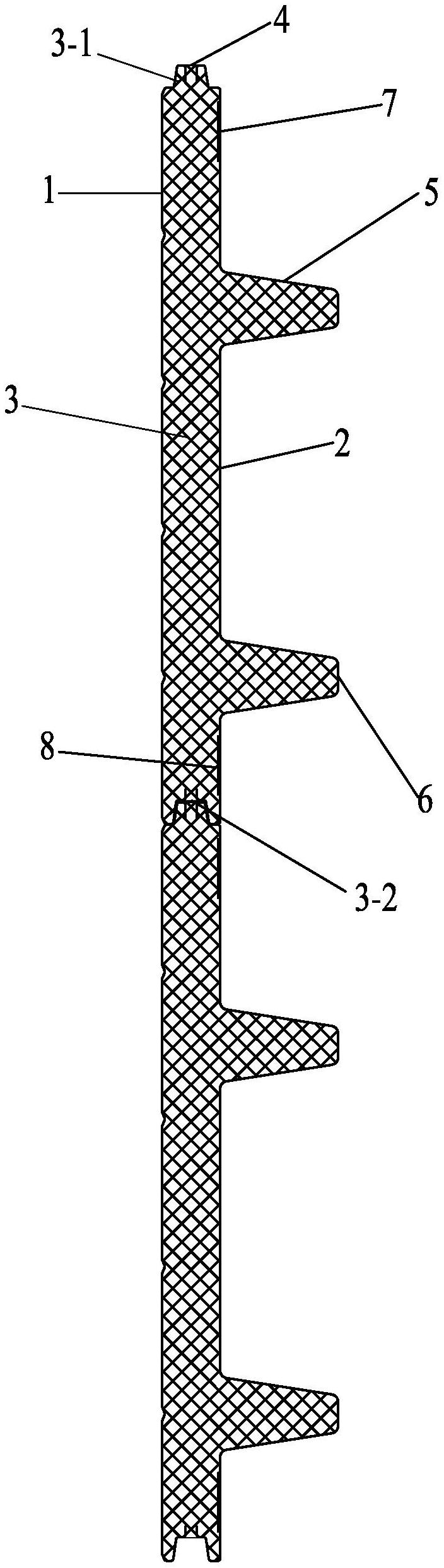本实用新型属于工业滑升门技术领域,涉及一种抗风门板,包括抗风门板本体,所述抗风门板本体包括发泡料,所述发泡料的上端形成连接部,发泡料的下端设置连接槽;发泡料的一侧表面贴合设置第一面板,发泡料的另一侧表面贴合设置第二面板,所述第一面板、第二面板两者上端均朝向连接部内平行弯折,第一面板与第二面板两者下端均朝向连接槽的底面弯折;发泡料对应于第二面板一侧设置第一道背筋、第二道背筋。该门板在使用过程中密封可靠,抗风性能大大提高,并且门板上下口有断桥,具有隔热保温作用。