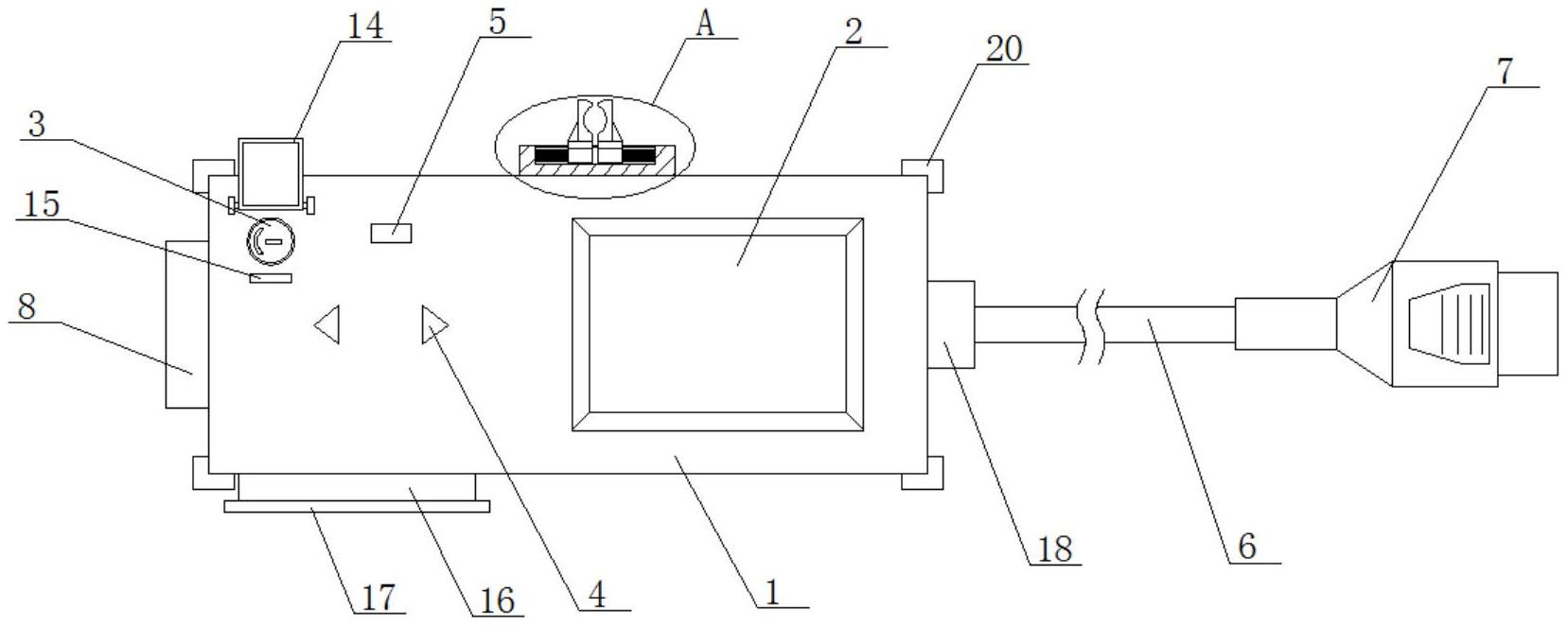 本实用新型涉及充电器检测仪技术领域,且公开了一种能预置充电器参数的电动自行车充电器检测仪,包括检测仪本体,所述检测仪本体侧壁上安装有数码显示屏和开关,所述检测仪本体侧壁上安装有充电参数调节按钮,所述检测仪本体上安装有电源指示灯,所述检测仪本体的一端固定连接有电线,所述电线的另一端连接有电动车充电接头,所述检测仪本体远离电线的一端设有充电器接口,所述检测仪本体侧壁上固定连接有定位板,所述定位板侧壁上开设有T型滑槽。本实用新型便于将用于连接电动车充电接头的电线固定收纳,防止电线易因拉扯而损坏,且利于该充电器检测仪的携带。