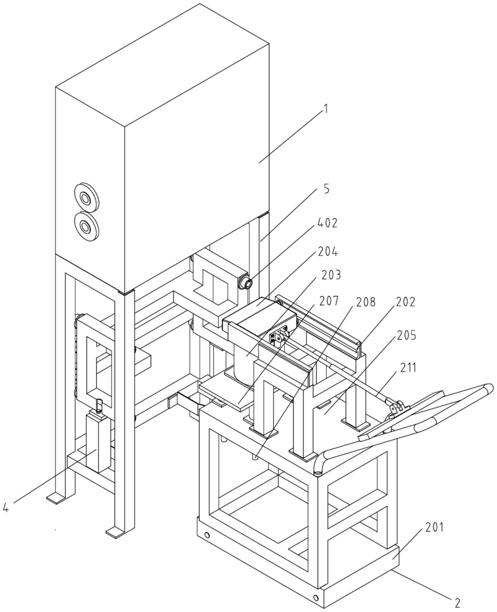 本实用新型涉及一种全自动放射性物质取样设备,属于放射性物质处理设备领域。该设备包括上部支撑取样装置、中部装有接液装置、下部装有提升装置且可以推入储运装置的架体;取样装置的固定板固连盖状的连接套、且制有若干排气穿孔,固定板中央穿插固定的下料管上端穿出连接套后与定量收集管的下端连通,定量收集管的上端与排气管一端连通,排气管的另一端迂回与连接套的侧壁连通;定量收集管的一侧分别通过出料阀和进料阀与出料管和进料管连通;储运装置含有可以推移的转运小车;提升装置含有的提升架内侧延伸出承担导轨平台的承接臂。本实用新型保证取样过程完全处于屏蔽状态,安全可靠的完成放射性物质取样储运。