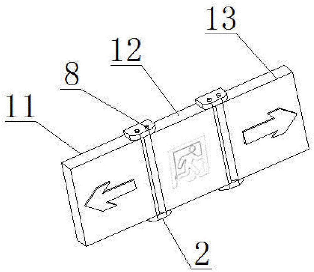 本实用新型公开了一种用于柱面安装的疏散标志灯,包括灯体,其中灯体是由三个灯盒组成,分别为左灯盒、中灯盒和右灯盒,在灯盒的侧面设有穿线孔,灯盒是由前面板和后背板组成,在后背板上设有挂孔,后背板的两侧与前面板的夹角为30°~70°,后背板的侧面通过圆弧板与前面板连接,相邻两个灯盒之间通过连接板铰接,连接板的两端通过销轴与灯盒连接,销轴位于圆弧板的圆心处,由于整个灯体是由三个灯盒铰接组成,所以在安装时,每个灯盒的后背面都可以与弧形的墙面进行接触,因此在安装时,不需要再使用辅助的支架,就可以确保灯体安装的牢固,另外由于灯盒之间是铰接的,从而也避免了灯体两端刮伤来往行人的情况。
