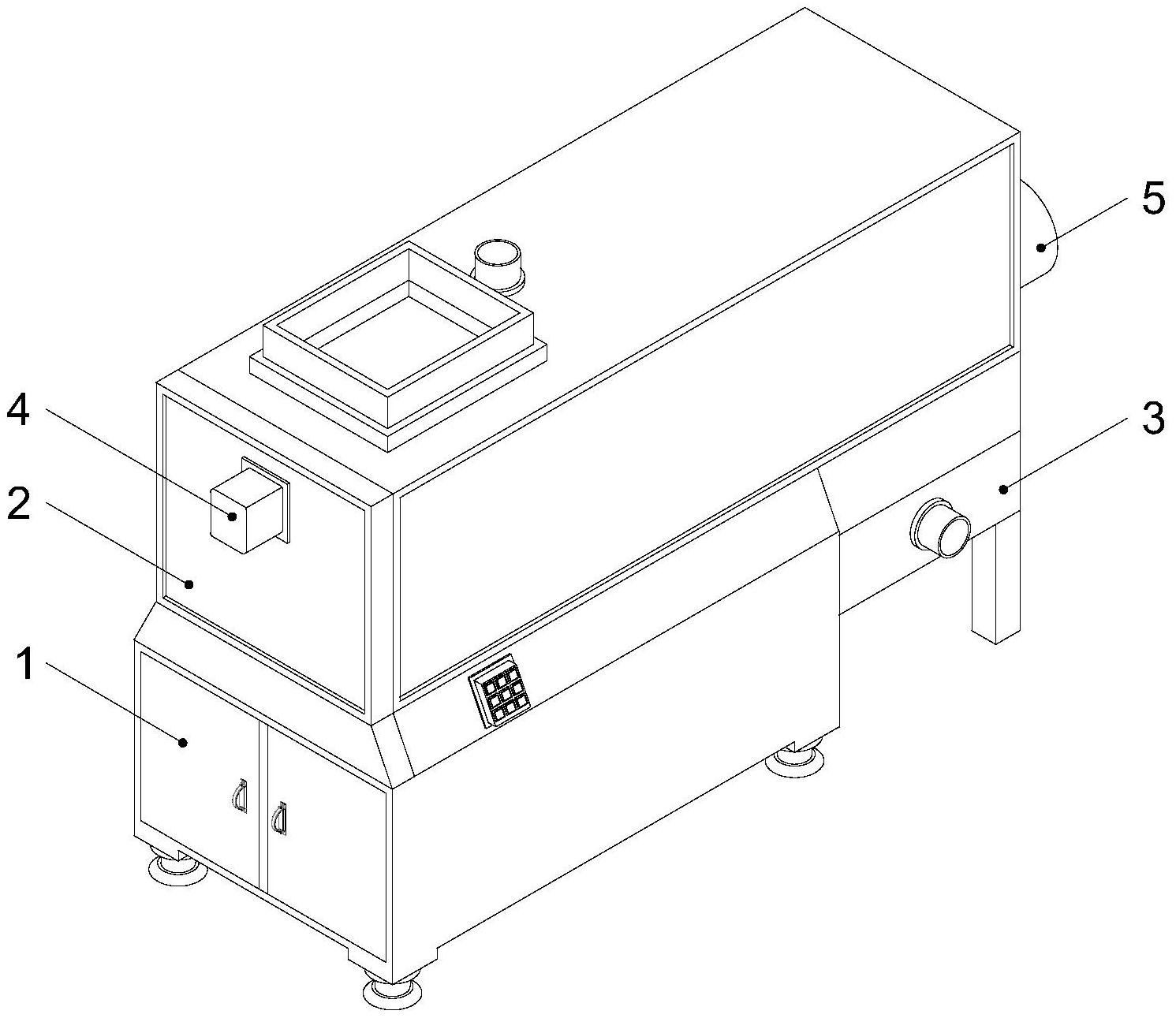 本实用新型涉及陶瓷生产技术领域,具体公开了一种陶瓷生产原料淘洗设备,包括底箱、工作箱与废水箱,工作箱固定连接于底箱的顶部,废水箱固定连接于工作箱一端的底部,工作箱内部的顶部开设有空腔,且工作箱一端的外侧固定连接有第一电机,第一电机的输出端固定连接有转杆,转杆的一端转动连接于空腔的内壁上,且转杆的外侧固定连接有多组均匀设置的磨砂棒,空腔的内底面呈倾斜设置,且空腔一端的底部连通有连接管,本实用新型陶瓷生产原料淘洗设备,使陶瓷原料能够快速的投入到生产当中,提高了陶瓷生产的效率。
