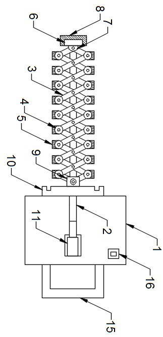 本实用新型公开了一种试管刷,包括支撑块,支撑块的一侧设有导杆,导杆的两侧均设有伸缩架,伸缩架的顶端安装有多个安装套,位置相对的两个安装套的顶端固定连接有连接块,导杆的一端固定连接有耳栓,耳栓的一端固定连接有限位块,限位块和连接块的表面均安装有毛刷。本实用新型一种试管刷,通过电动伸缩杆带动导杆做往复移动,使导杆上的伸缩架发生伸缩,随着伸缩架的伸长其直径变小,利用伸缩架上的毛刷便于对不同直径的试管孔壁进行洗刷,方便快捷。