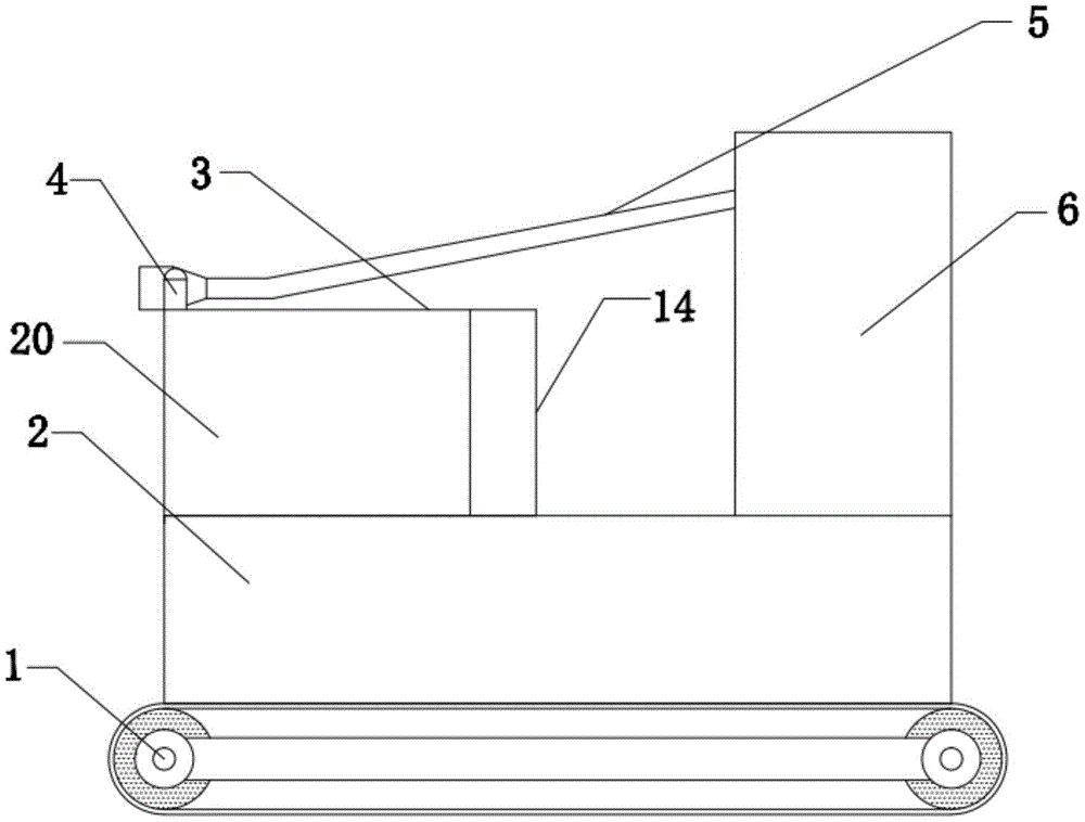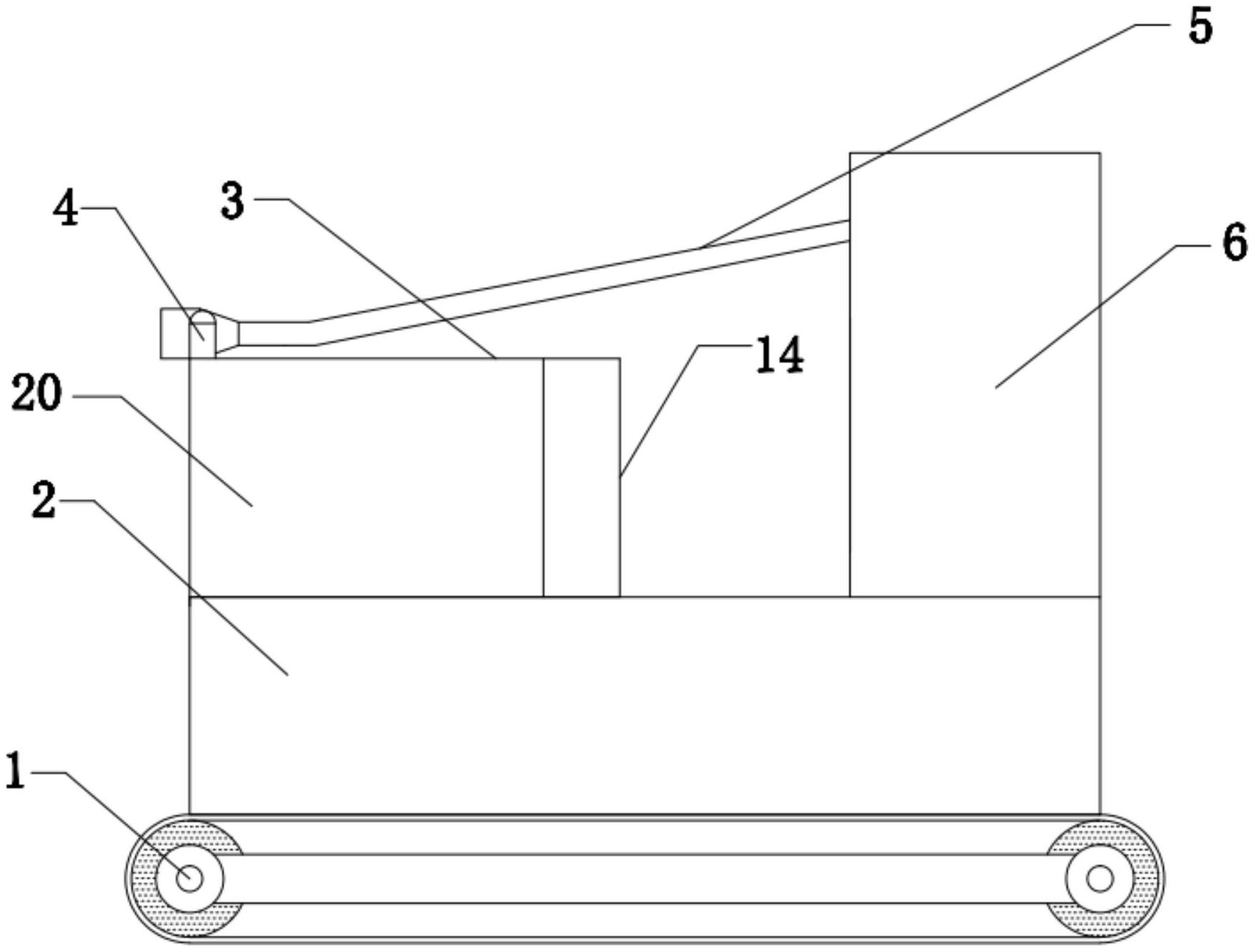 本实用新型公开了一种灭火机器人,包括履带机器人本体,所述履带机器人本体上固定安装有支撑架,所述支撑架上方固定安装有烟雾过滤外壳,所述烟雾过滤外壳顶部固定安装有烟雾感应开关,所述烟雾过滤外壳内部固定安装有风机,所述烟雾过滤外壳内部设置有过滤室,所述支撑架上固定安装有灭火箱外壳,所述灭火箱外壳上固定安装有箱门,所述灭火箱外壳内部安装有灭火器,所述灭火箱外壳内顶部设置有滑槽,所述滑槽内顶部固定安装有电动液压推杆,所述电动液压推杆的活塞杆上固定连接有滑块。该机器人的过滤室内设置多层过滤层,过滤效果突出,利用细水雾灭火器进行灭火,灭火效果突出。
