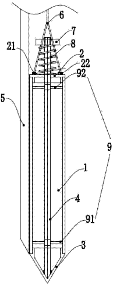 一种取样器,包括取样容器,所述取样容器包括主体、设置于所述主体上端的上压盖、下端的下底盖和穿过所述上压盖、所述主体内腔,与所述下压盖连接的中心轴;所述取样器还包括分节手把和细绳,所述分节手把是由多根首尾用螺纹旋紧的杆组成;所述主体与所述分节手把下端连接;所述细绳连接于所述上压盖。本实用新型主要通过利用分节手把调节长度,达到可以取到储料仓中不同层次粉料的目的,及时供生产过程分析使用,从而得到有效的数据,提高生产效率;而且分节手把的装卸方便、简单、快捷。