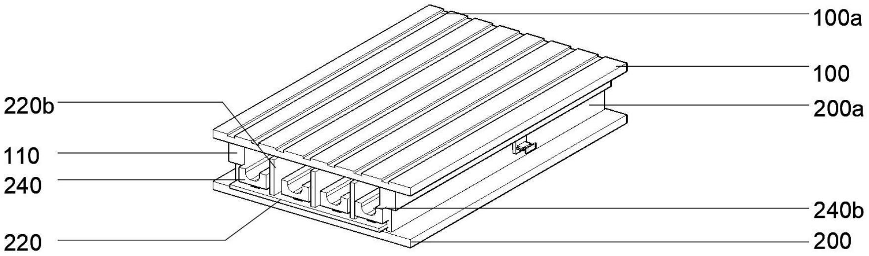 本实用新型公开一种防腐蚀塑木板材连接结构包括:上板体、下板体,上板体顶部设有多个等距防水槽,且所述防水槽连接至所述上板体内壁,且所述上板体底部两侧分别设有两个等距第一固定件,且所述第一固定件底部内壁设有连接槽,且所述连接槽连接至所述上板体底部外壁,下板体所述下板体位于所述上板体底部,且所述下板体顶部两侧分别设有与所述连接槽相适配的连接件,且所述连接件外侧壁连接至所述连接槽内侧壁,该一种防腐蚀塑木板材连接结构,能够提高所述人工在安装上的便捷性,且增加人工在工作时的效并增加整体装置的实用性。