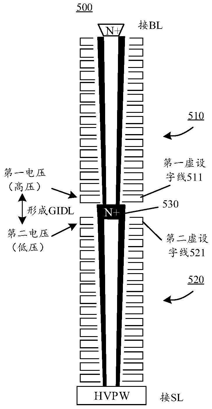 本申请公开了一种存储器的操作方法、存储器及存储系统,涉及存储器技术领域。该存储器中包括堆叠的第一存储串和第二存储串,该方法包括:向耦合到第一存储串的第一虚设字线施加第一电压;以及控制耦合到第二存储串的第二虚设字线处于第二电压;所述第一电压高于所述第二电压,且所述第一电压和所述第二电压之间的压差符合在所述第一存储串和第二存储串之间的连接区产生带带隧穿的压差要求。在重掺杂连接区两端形成压差,在重掺杂连接区上下形成电势差强电场,使空穴在强电场区产生,并向第二堆栈的方向运动,从而对第二堆栈的存储单元中的数据进行擦除,避免受重掺杂连接区的影响而无法对中部堆栈进行擦除的问题。