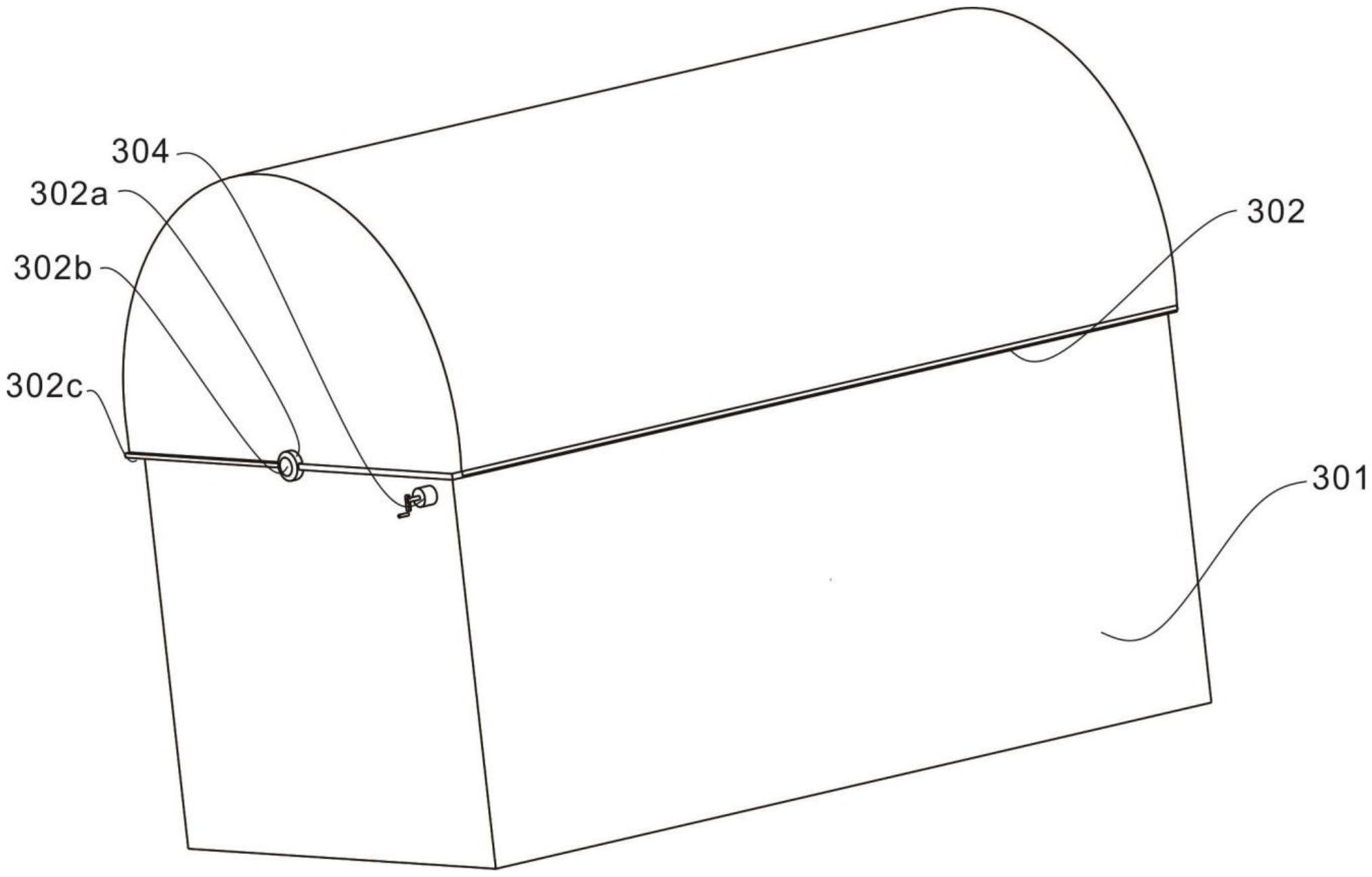 本实用新型涉及雨棚技术领域,特别是一种遮挡机构及转运车雨棚,一种遮挡机构包括,开合部件,包括制动件,制动件一侧滑动连接有从动件,支撑部件,位于所述开合部件一端,包括第一转动件,第一转动件转动连接于制动件一端,第一转动件对称设置有第二转动件,主体部件,位于开合部件以及支撑部件外部,包括壳体,壳体外侧固定连接有的支撑连接杆,壳体一侧安装有门体,壳体另一侧转动连接有手轮,本实用新型通过摇摆杆可以实现雨棚打开以及关闭,第三转轴以及第四转轴可以实现龙骨的移动,使得雨棚有支撑力,是落在雨棚上的雨滴因重力作用沿着雨棚落下,不会再雨棚上产生积水。