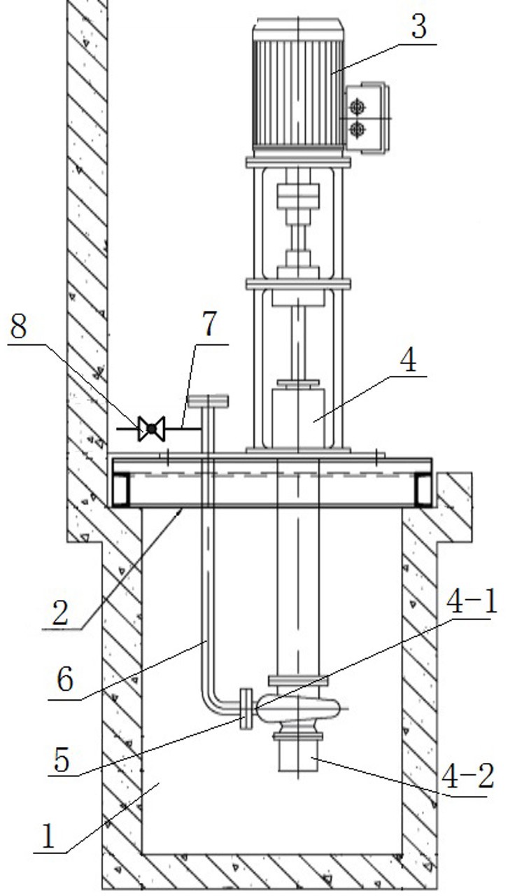 本实用新型公开了一种平整机组多油废水液下排污泵排气装置,涉及钢铁制造设备技术领域,包括有驱动电机带动的竖立设置的液下排污泵,所述液下排污泵上端在小车地坑的盖板之上,下端位于小车地坑的盖板之下,所述液下排污泵下部的出水口通过出水口法兰连接有出水管,所述出水管伸出小车地坑的盖板之上,所述出水管于小车地坑的盖板之上的位置连接一直接头,所述直接头的另一端设有排气球阀。本实用新型与现有技术相比,可以解决现有平整机组废水液下排污泵吸入的空气较难排出,导致抽水不顺畅的问题。