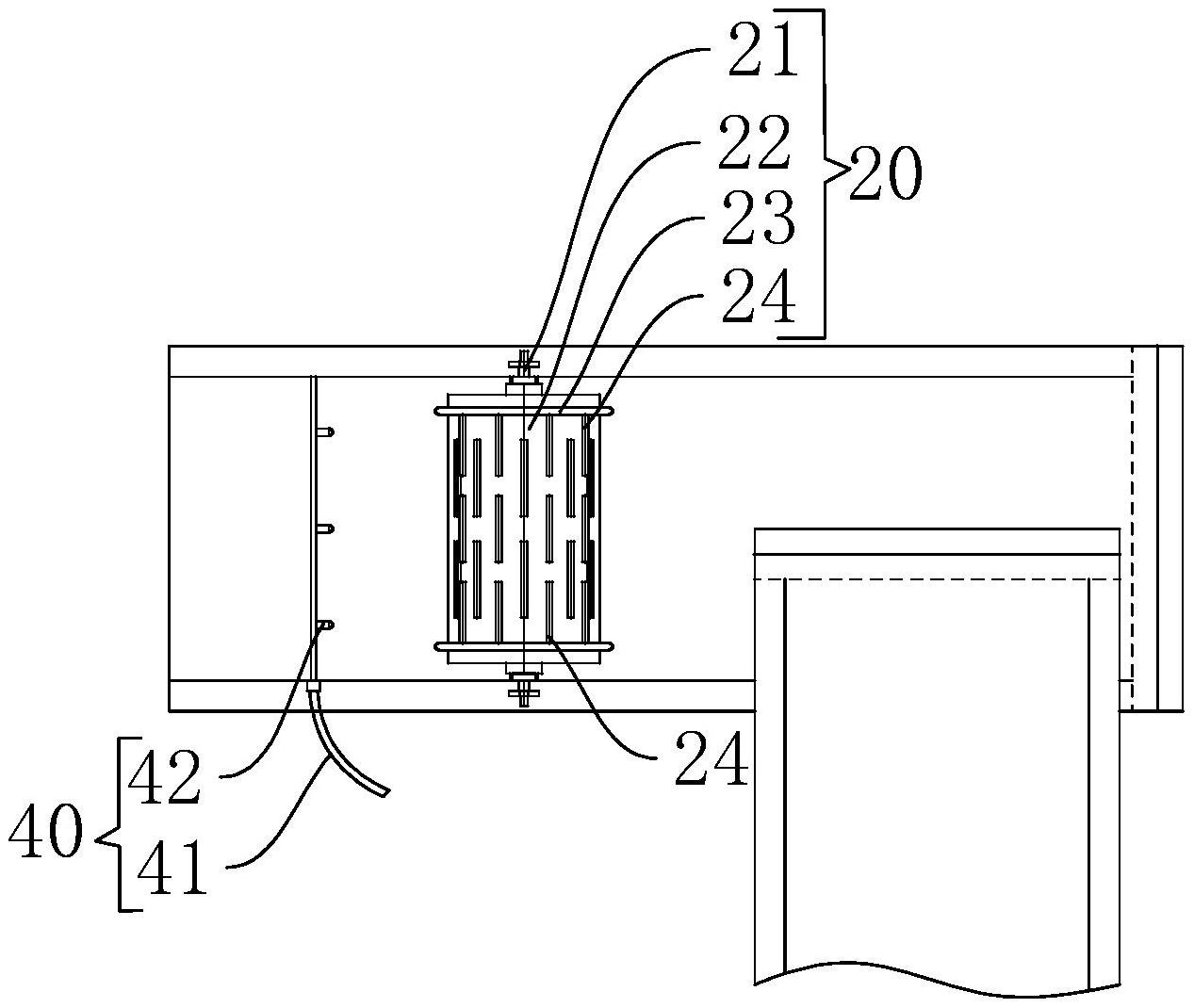 本实用新型提供了一种防米结块碾压装置,包括:传输带,该传输带用于传输清洗晾干后的糯米;防米结块碾压机构,防米结块碾压机构设置于传输带上,防米结块碾压机构包括连接端和碾压部,连接端设置于碾压部的两侧,且碾压部为圆柱形,碾压部上设置有与输送带接触的环形凸起,碾压部的周向上设置有若干相互平行设置的长条形拨块。本实用新型具有方便传输、使操作便利的特点。