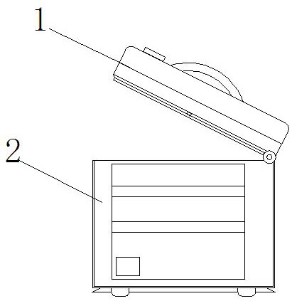 本实用新型属于盐酸羟胺制作技术领域,尤其为一种用于盐酸羟胺的搅拌混合装置,包括翻盖和外壳主体,所述翻盖与外壳主体直接通过转动轴转动连接,所述外壳主体的内部搅拌罐,所述搅拌罐的内部设置有搅拌桨,所述搅拌桨的表面固定有搅拌桨,所述搅拌杆的底端从动转杆,位于所述搅拌罐的下方设置有底板,所述底板下端中间位置设有支座,所述底板的内部设有主动齿轮和从动齿轮,设计在外壳主体的内部设有齿轮组,通过驱动电机驱动主动齿轮,在有主动齿轮驱动从动齿轮,且每个从动齿轮的下方设有复位弹簧,当把搅拌罐放置在对应位置时,通过复位弹簧下压,使得从动齿轮下降,与主动齿轮接触,此时开始搅拌,当将搅拌罐提起,则复位弹簧回复。