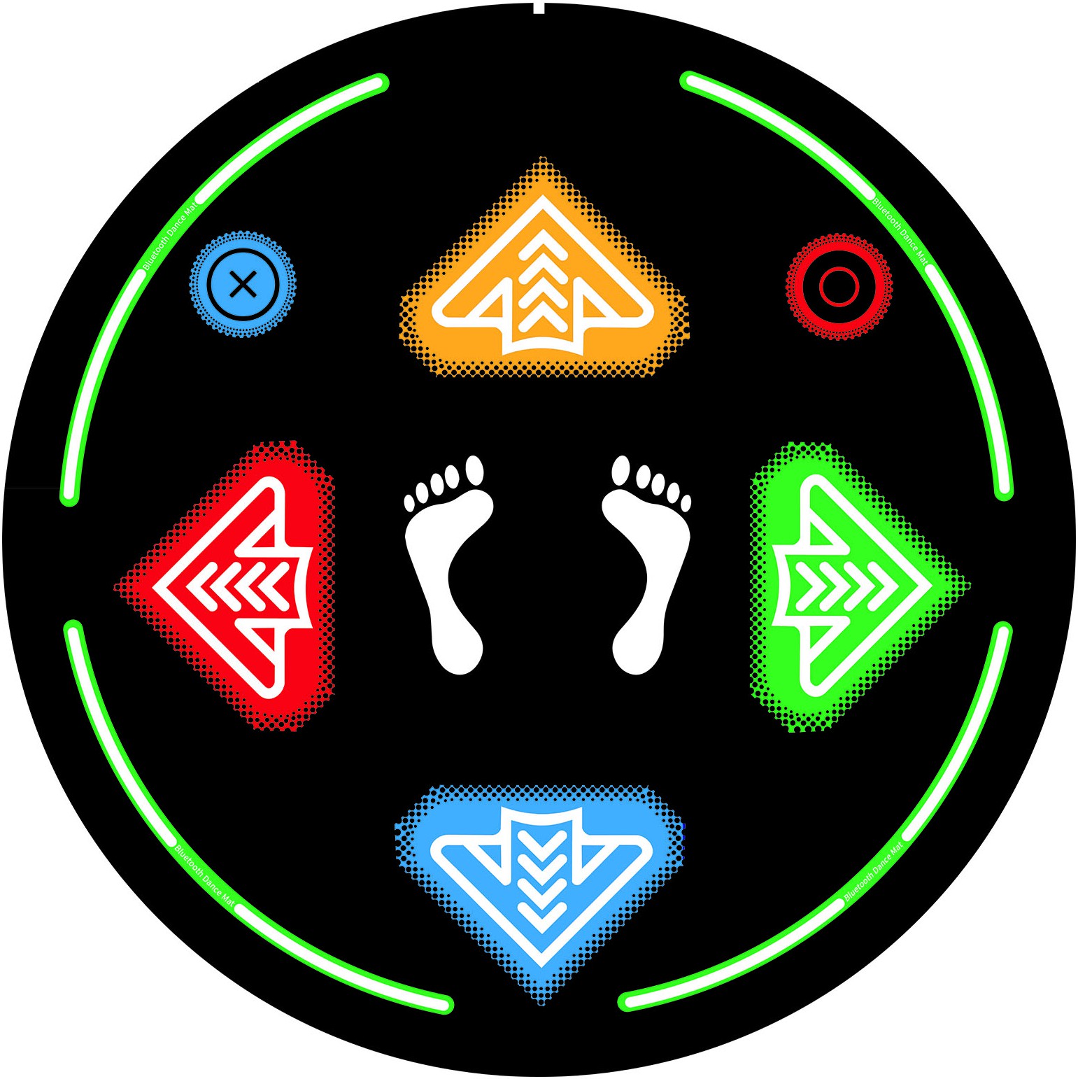 1.本外观设计产品的名称:跳舞毯(蓝牙健娱)。2.本外观设计产品的用途:用于一种运动健身器材,供人们在毯上根据音律跳。3.本外观设计产品的设计要点:在于形状与图案的结合。4.最能表明设计要点的图片或照片:主视图。5.本外观设计产品为薄型产品,省略左视图、右视图、俯视图、仰视图;无设计要点,省略后视图。