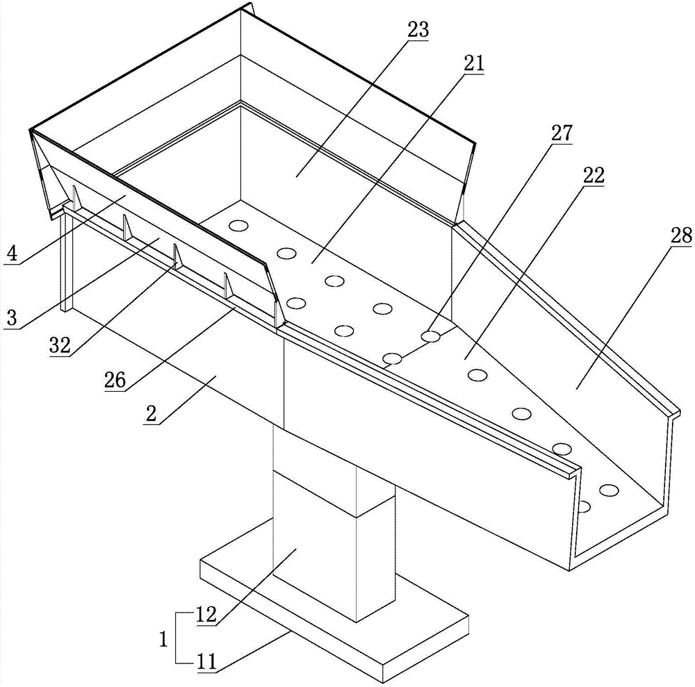 本实用新型公开了一种用于肉类加工的上料装置,涉及肉制品加工领域,包括支座以及位于支座上端的上料斗,上料斗包括用于盛放肉块的储料仓,储料仓的一侧连接有开口逐渐减小的供料通道,储料仓的其余三个侧面设置有竖直的挡料板,三个挡料板上侧面均沿其长度方向设置有插槽,插槽底部向储料仓内侧倾斜,插槽从一端横向平移插设有向外倾斜的加长板,三个挡料板上的加长板端部相抵接,插槽开口处内壁上设置有沿其长度方向设置的凸棱,加长板两侧面下部设置有与凸棱配合卡接的卡槽。本实用新型解决上料装置容积小、装料少的问题,能够调整上料装置的容量大小,使其能够装载更多的肉类原材料,降低加料的频率,提高肉类的加工效率。