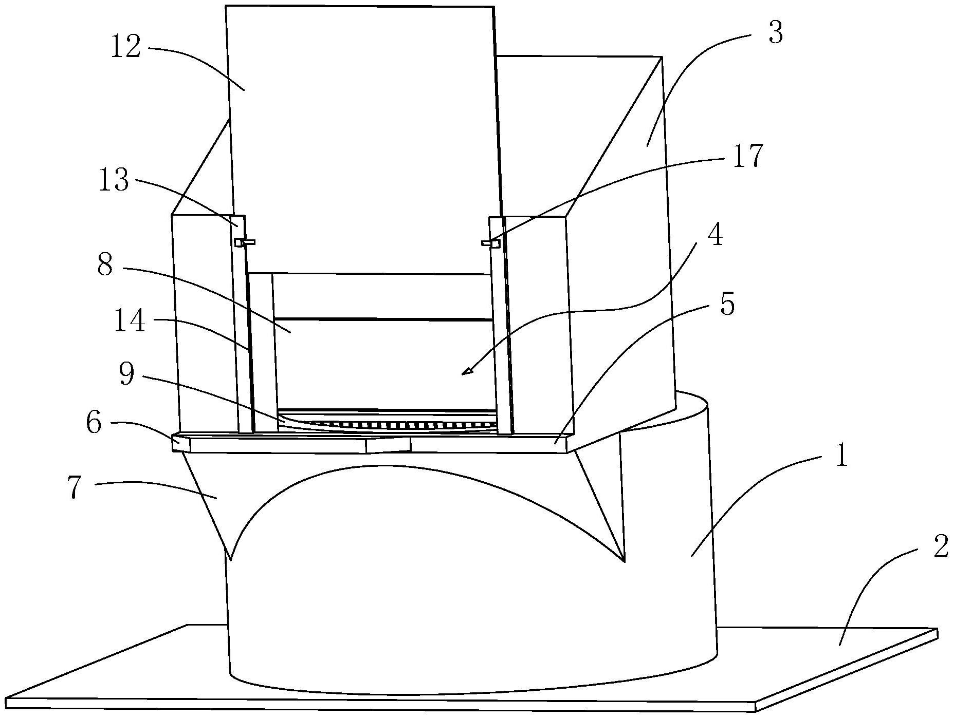 本申请涉及活性炭技术领域,尤其涉及一种磨粉用进料装置,其包括料斗,所述料斗的底部固定设置有底板,所述底板下方呈中空设置,所述底板的底部为储料仓,所述料斗的上方固定有房板,所述房板的一面形成有用于进料的进料口,所述房板与料斗间固定有挡料横板,所述挡料横板远离房板的端部设置有支撑板,所述挡料横板两端的底部垂直设置有加固板。本申请通过设置房板、挡料横板和进料口,具有便于活性炭进料的效果。