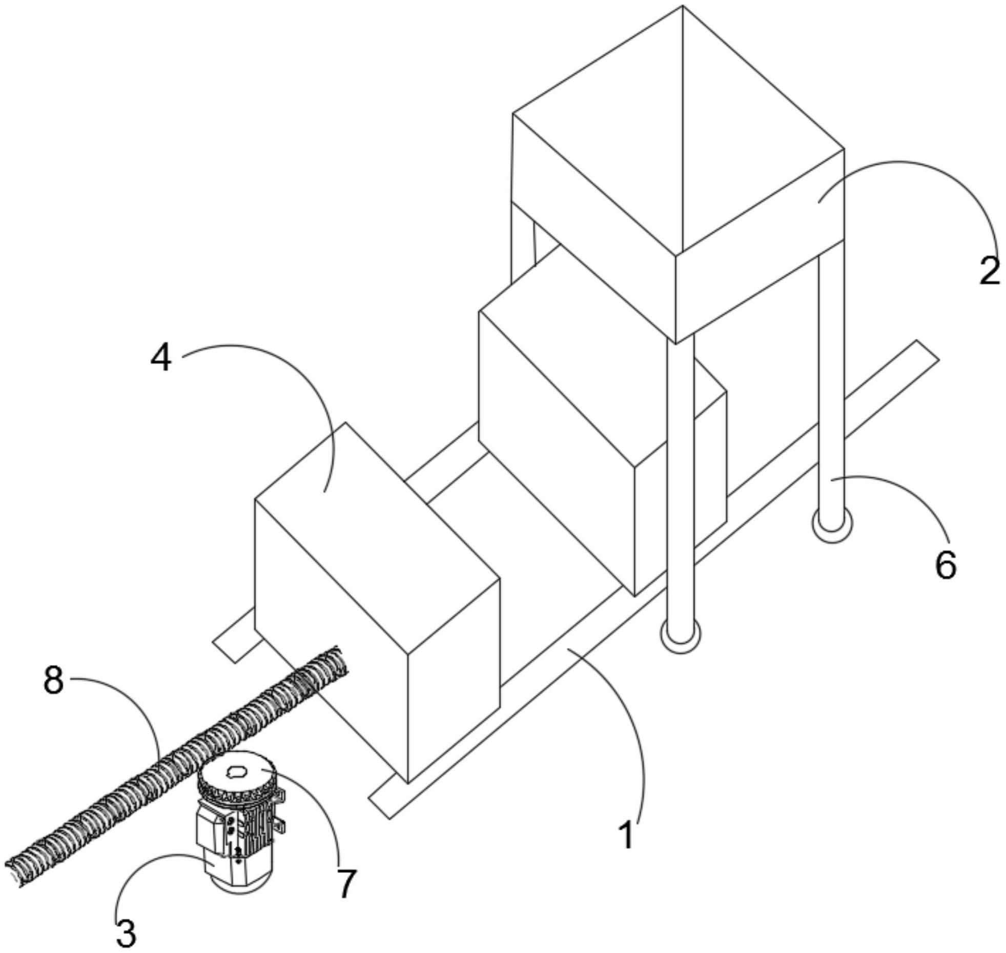 本实用新型提供一种移箱轨道组件,包括轨道、落砂装置和驱动电机,所述轨道设置有沿所述轨道运行的砂箱和带动所述砂箱滑动的滑块,所述落砂装置设置有支撑所述落砂装置的支架,所述驱动电机设置有与所述驱动电机同轴转动的蜗轮和能够推动所述砂箱前进的蜗杆,所述蜗杆与所述蜗轮啮合连接,所述滑块设置有限制所述砂箱位移的直角板,所述砂箱下部的四个角分别与所述滑块连接,所述直角板贴合所述砂箱下部的角的两个侧面。本实用新型解决了目前在消失模铸造过程中的运送砂箱过程常常需要人工操作转运,转运效率很低的问题。