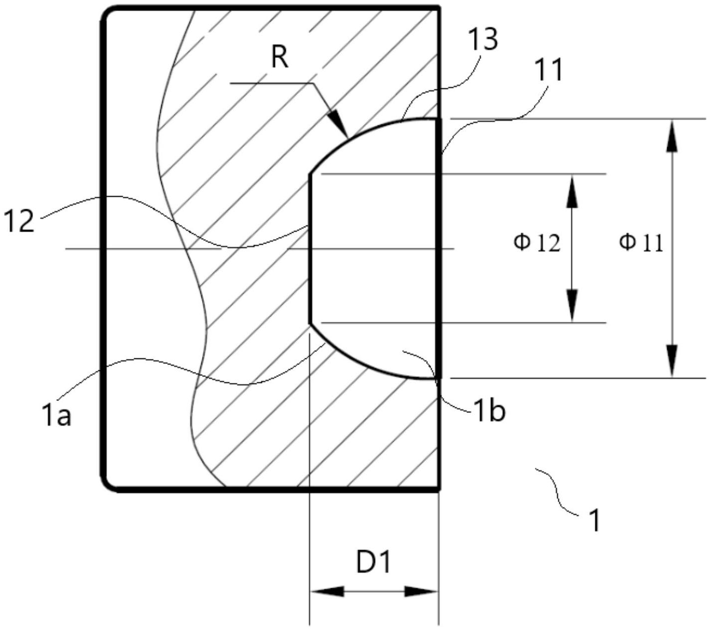 本实用新型公开了一种避免螺栓内六角开裂的打饼光冲模,对螺栓原材料进行打饼形成内六角螺栓冷镦胚体;打饼光冲模设有形成凹模型腔的凹槽,凹模具有槽口和槽底,槽口两侧分别通过呈对称分布的圆弧导角与槽底连接;槽口内径与凹槽深度的比例范围为2.5‑2.6:1,且槽口内径与槽底内径的比例范围为1.4‑1.45:1;螺栓原材料在凹模型腔内通过打饼成型得到内六角螺栓冷镦胚体,用于避免在打头工序中发生内六角端部发生开裂;本实用新型通过特定结构设计加大打饼光冲模的凹模型腔体积,根据冷镦成型体积不变的原理,使得螺栓冷镦胚体头部的打饼长度得到缩小,进而确保在后续进行打头时显著减小了材料的变形量,避免内六角端面发生开裂问题。