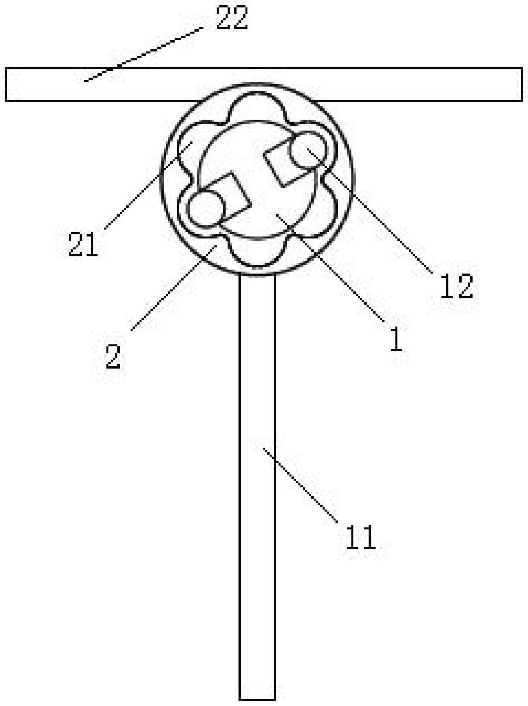 本实用新型公开了一种转轴结构及包括该转轴结构的活动外遮阳设施,可全年动态调节进入建筑室内的太阳光,助力建筑使用者实现行为节能。本实施例提供一种转轴结构,包括:第一底座;第二底座,第一底座与第二底座的顶面上均开设有通孔;定心旋杆,定心旋杆用于转动连接在通孔内,定心旋杆外周壁的中心设置有旋片,第一底座与第二底座用于与墙面连接,旋片用于与活动件连接,定心旋杆的上下两端均设置有限位件,转动旋片旋转一定角度可通过限位件固定旋片继续转动实现固定。转动活动件,使定心旋杆发生转动,带动限位件转动一定的角度并停止,活动件即会在限位件停止的此处固定,不易受到风吹等外界因素而转动,影响遮阳效果。