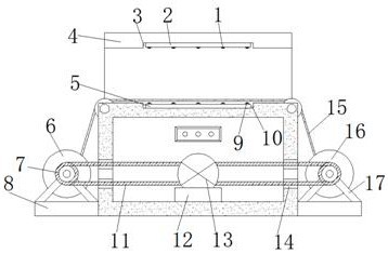 本实用新型公开了一种树脂拉链带缺牙检测装置,包括工作台,所述工作台的顶部正中处开设有第二安装槽,第二安装槽的内侧底部焊接安装有第二安装板,第二安装板的顶部焊接安装有激光发射器,激光发射器与工作台水平,工作台的顶部位于第二安装槽的后侧焊接安装有竖板。该树脂拉链带缺牙检测装置,通过激光发射器、激光接收器、收卷辊、出卷辊和电机的配合使用使得装置能够对其拉链带进行连续性的缺牙检测,大大提高了检测效率,同时装置内设置有辅助辊与限位槽,使得装置在运转过程中,一方面对其拉链带进行了保护,避免出现划痕,拉伤,另一方面限位槽确定了拉链带的位置,使得检测效果大大提高,一定程度上提高了装置的实用性。