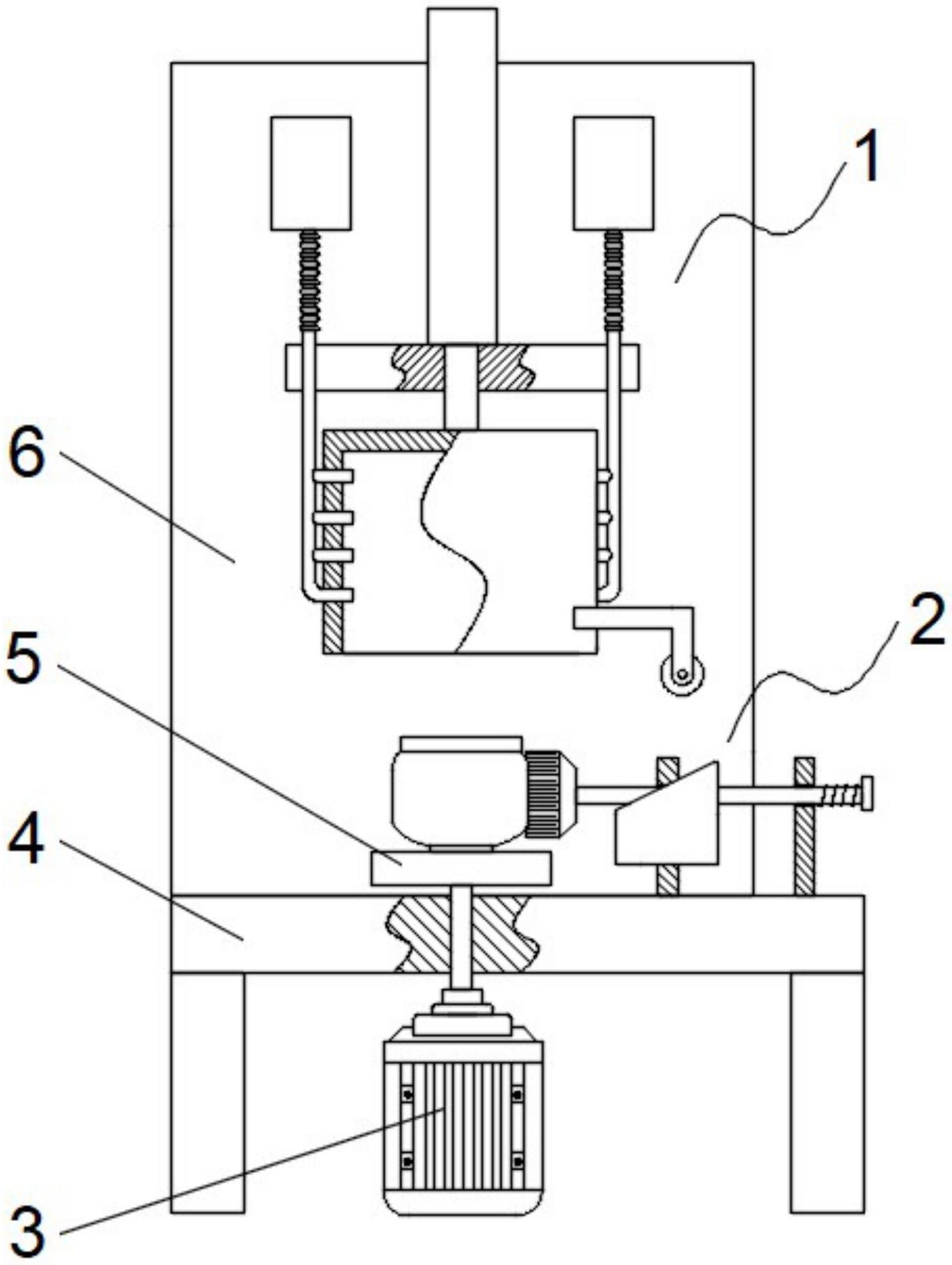本实用新型涉及陶瓷喷釉自动升降旋转装置,包括工作台以及固定在其顶部的安装板,所述工作台的上方转动设置有用于摆放陶瓷器的支撑板,所述支撑板的一侧设置有用于给陶瓷器表面清灰的润湿机构,所述安装板的正面设置有用以给陶瓷器喷釉的上釉机构;当升降气缸的伸出端伸长至一半长度时,滚轮在斜块的斜面的中心位置处,此时,陶瓷器与毛刷之间存在间隙,将毛刷沾湿水分,开启驱动电机,同时升降气缸的伸出端收缩至最短,此时,滚轮与斜块分离,沾湿水分的毛刷将陶瓷器外壁上的灰尘清理掉,避免人工清理其表面灰尘的过程,从而防止对陶瓷器造成损伤。