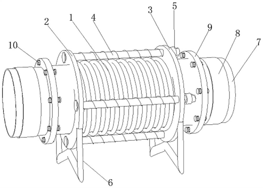 本实用新型公开了一种内壁耐磨损的三维波纹补偿器,包括波纹管,所述波纹管外径左侧位置固定连接有第一环板,所述波纹管外径右侧位置固定连接有第二环板。本实用新型中,波纹管长时间使用,难免会出现磨损等其他现象发生,因此波纹管内径设置有耐磨层,耐磨层采用陶瓷复合钢管材质,该材质指的是钢管内衬陶瓷,内衬陶瓷的作用是防止内衬磨损,主要应用于电厂、煤炭等行业输送粉煤灰、矿粉、料渣等,这些东西的磨损很严重的,必须使用耐磨内衬,耐磨层可更好的保护波纹管内经,且不影响波纹管的使用效果,可大大延长管道的使用寿命,环板底部设置有支架,支架可起到一个支撑作用,可更好地将波纹管支撑起。