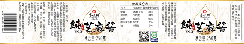 标贴(富味乡纯芝麻酱250g)