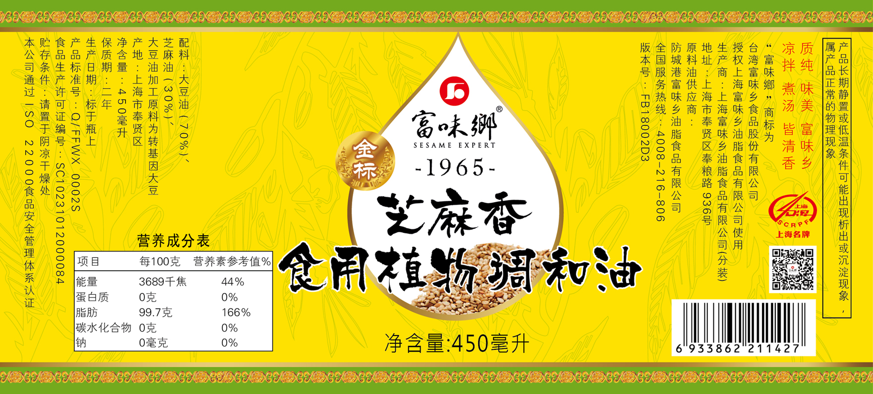 标贴(金标芝麻香食用植物调和油)