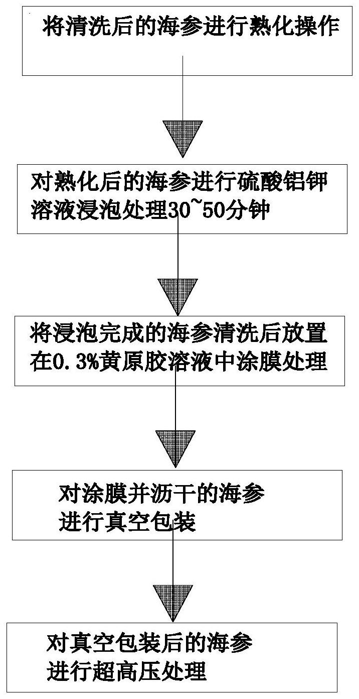 本发明涉及罐头生产技术领域,具体是涉及一种常温即食海参软罐头的制作设备及方法,包括:海参熟化机构;海参浸泡机构;真空包装机;高压仓;海参熟化机构包括有:第一机架;加热箱;海参上料组件;清水上料组件;升降打捞组件,设置在加热箱上;海参下料组件;海参浸泡机构包括有:第二机架;浸泡箱;顶升排料组件,设置在浸泡箱上;水平丝杆滑台;夹持驱动组件,设置在水平丝杆滑台的输出端上;海参清洗组件,本发明所示的一种常温即食海参软罐头的制作设备及方法,能够实现自动化的海参加工过程,人工劳动强度低,工作效率高,能够适应大规模生产过程,防止人工上下料及捞料过程,降低溶液的损耗。