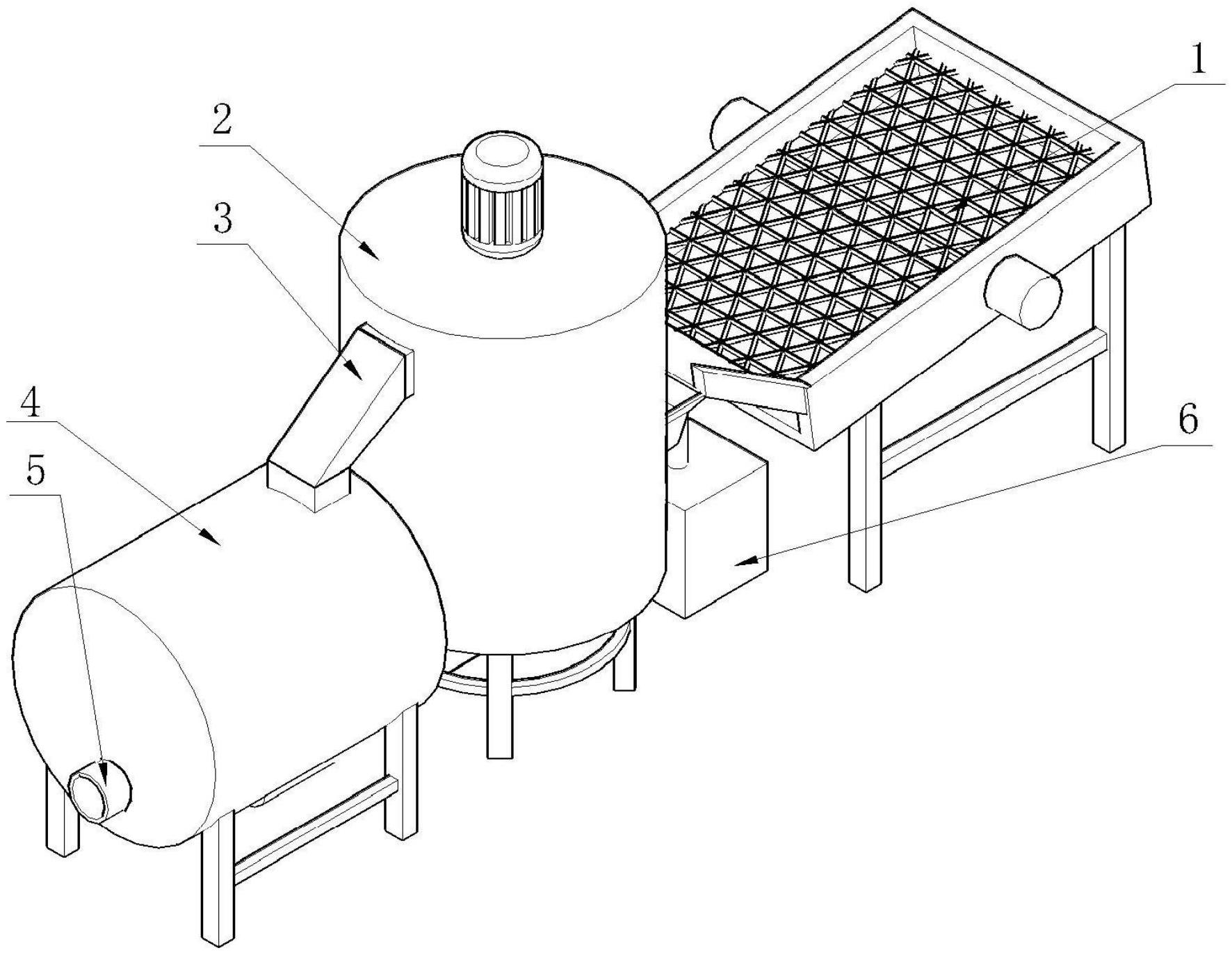 本实用新型公开了一种硅胶猫砂用多级自动脱水装置,使含有水分的颗粒状硅胶猫砂进入一级脱水装置,在倾斜设置的一级脱水装置的过滤网上,通过震荡筛本体上安装的激振器产生的震荡,对硅胶猫砂进行初级脱水,脱水后的猫砂从过滤网连接的出料板进入二级脱水装置的进料斗内,在电机A带动下,使进入过滤网A内的硅胶猫砂在安装有螺旋状旋叶的离心辊带动下旋转脱水,并上升进入出料管A,出料管A连接的连接管将脱水后的硅胶猫砂输入三级脱水装置外壳B内,硅胶猫砂在过滤网B通过电机B带动离心辊B转动,对硅胶猫砂进行脱水,硅胶猫砂通过离心辊B上设置的螺旋状旋叶移动至出料管,从出料管排出,提高硅胶猫砂的脱水效率和硅胶猫砂的加工效率。