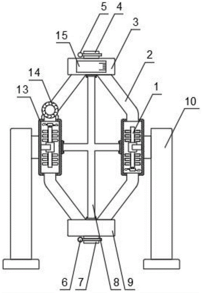 本实用新型公开了一种矿山机械润滑油加工用混料装置,包括搅拌箱、搅拌件和立柱,所述搅拌箱共设有两个,且两个搅拌箱之间通过连接架固定连接,所述连接架的竖直两端分别设有第一壳体和第二壳体,所述搅拌箱与第一壳体和第二壳体之间均通过倾斜设置的管道连通。本实用新型中,搅拌箱与第一壳体和第二壳体之间通过管道连通,且管道上安装有循环泵,循环泵可使得管道中的润滑油进行流动,通过涡轮叶片的设置,可使得转动杆带动搅拌臂对润滑油进行搅拌,可使得润滑油与添加剂进行混合,相比传统的搅拌装置,仅使用了一个循环泵,结构更加简单,造价更加低廉,节约了润滑油的生产成本。