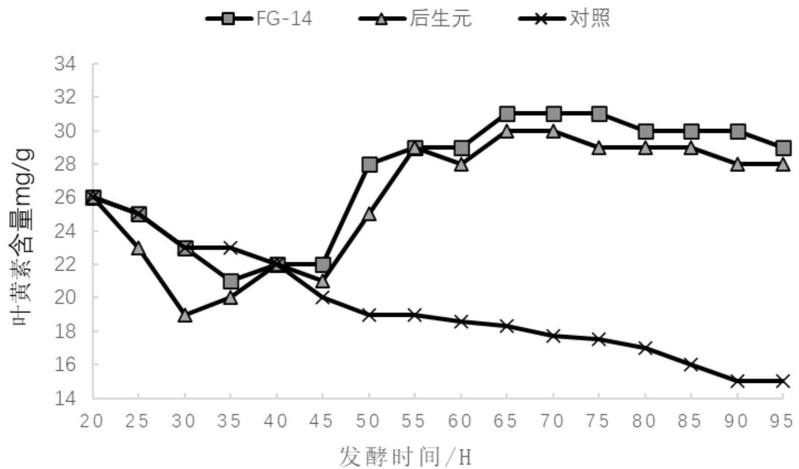 本发明提供了一种副干酪乳酪杆菌及其缓解视疲劳产品和应用;属于微生物领域。所述的副干酪乳酪杆菌(Lacticaseibacillus paracasei)为副干酪乳酪杆菌FG‑14,保藏编号为CGMCC No.24331,于2022年01月17日保藏于中国微生物菌种保藏管理委员会普通微生物中心。FG‑14发酵万寿菊所得的叶黄素酯产率高达31mg/g发酵液,可以用于制备缓解视疲劳的产品。
