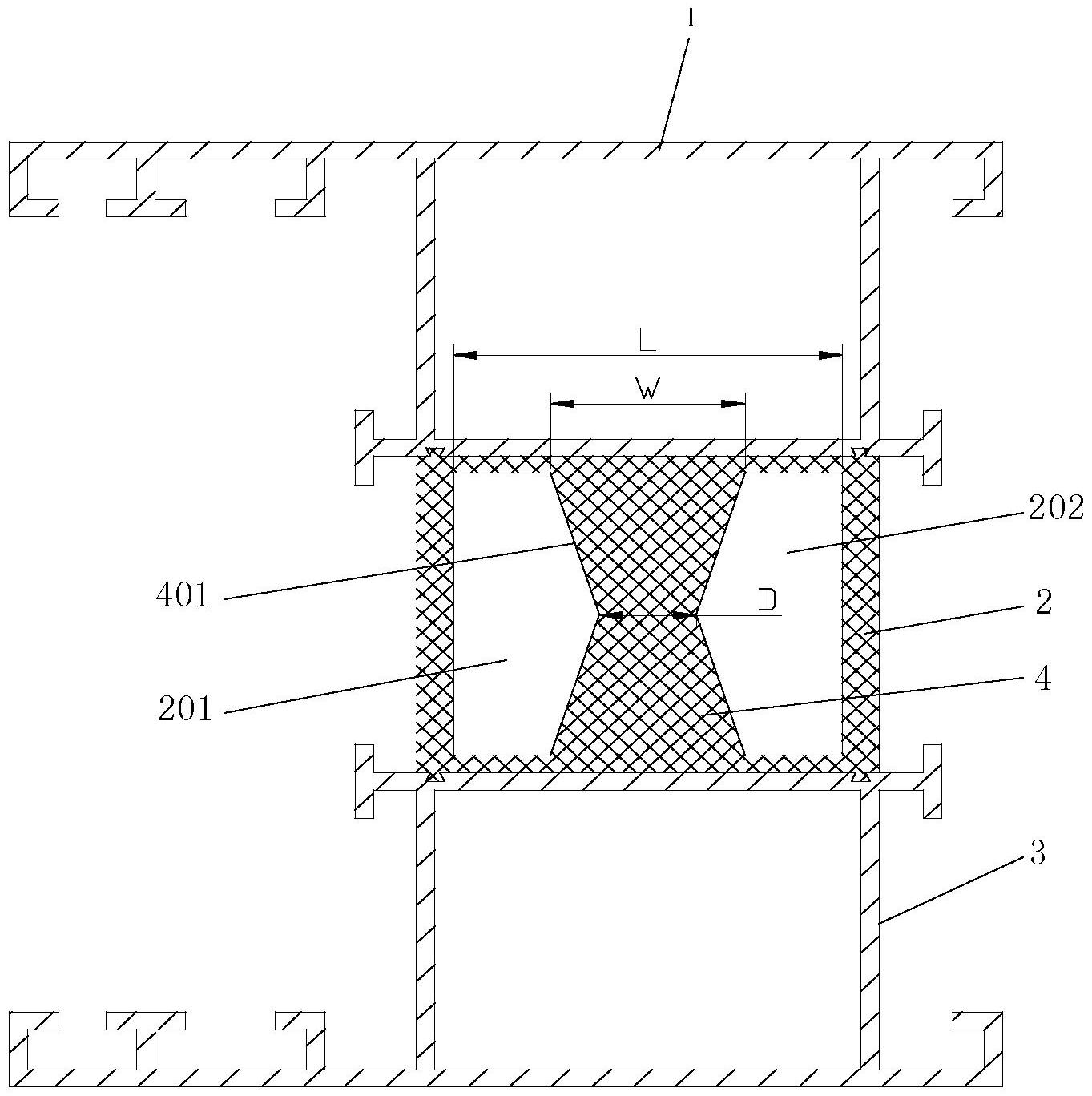 一种抗挤压型铝塑铝窗框型材,它涉及一种铝塑铝窗框型材。本实用新型为了解决现有铝塑铝窗框型材在低温环境下受撞击后,中间塑钢层容易出现裂缝损伤,导致其保温效果下降的问题。本实用新型包括外铝合金层、中间塑钢层和内铝合金层;外铝合金层、中间塑钢层和内铝合金层由外至内依次叠加固定连接;本实用新型还包括抗挤压支撑条,抗挤压支撑条插装在中间塑钢层的内腔中,且抗挤压支撑条的外侧面与中间塑钢层的内腔侧壁连接成一体,抗挤压支撑条的内侧面与中间塑钢层的内腔侧壁连接成一体。本实用新型属于门窗建材领域。
