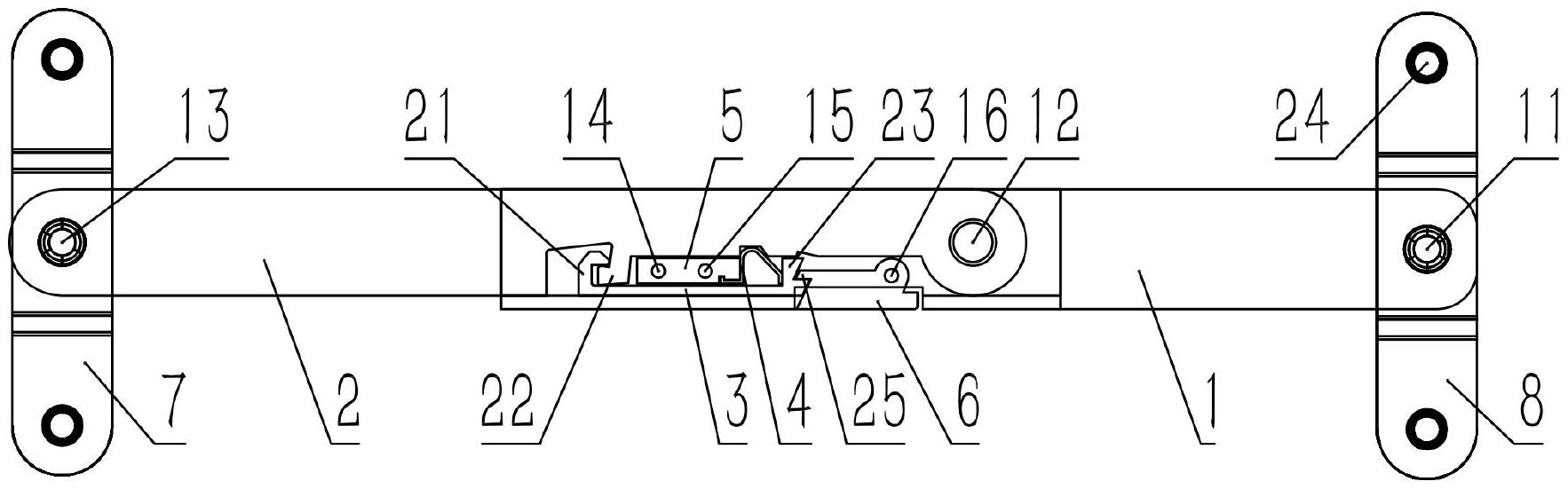本实用新型公开了一种用于外开窗上的回转定位限位器,涉及门窗配件的技术领域,解决了风力较大时会出现窗扇被迫自动关闭、甚至急速回落而导致扇玻璃碎裂的问题,通过按压按键推动推移限位结构,使滑移锁闭件沿第一回转摆杆滑移,弹簧支撑片受力压缩,解除第二限位结构对第一限位结构的限位,解除对按键按压,弹簧支撑片反弹并推动滑移锁闭件沿第一回转摆杆滑移,对滑移锁闭件和按键进行复位,本实用新型中,外开窗开启至最大通风角度后,通过回转定位限位器对外开窗的窗扇进行支撑,避免出现风力较大时,窗扇被迫自动关闭的问题,避免窗扇急速回落而导致扇玻璃碎裂的问题。