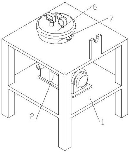 本实用新型公开了一种栓剂快速真空测漏装置,包括工作桌、真空泵机、一号连接嘴、支撑槽、支撑板、测漏部分,所述工作桌中部固定有一水平的真空泵机,所述真空泵机左部前端固定有一水平的一号连接嘴,所述工作桌上部固定有一竖直的支撑槽,所述工作桌顶端右部固定有一竖直的支撑板。本实用新型通过利用染料的扩散性能够对栓剂表面的基质的包裹性能进行快速判断,从而快速分辨不合格的栓剂,而通过设置可控上下滑动的搅拌桨在能够实现对颜料和水进行快速均匀混合的同时,又能够防止永磁铁和搅拌桨对栓剂的基质造成意外的挤压碎裂,从而能够避免误检现象的发生,而支撑板的设置则方便对压力盖进行放置,从而使得检测工作更加的方便。