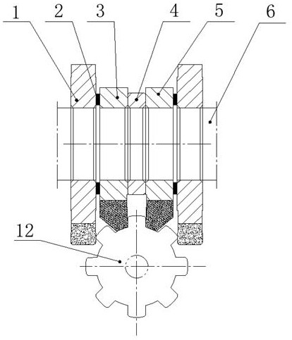 本实用新型属于机械加工领域,公开了一种一种组合式槽与棱一体化加工刀具,以解决现有技术加工轴向尺寸较大的花键类零件中存在的技术问题,该刀具包括安装在刀轴上的第一调整刀垫,第一调整刀垫的一侧装有第一槽刀,调整刀垫的另一侧装有与第一槽刀对称的第二槽刀,第一槽刀、第二槽刀的外侧均装有棱刀,第一槽刀、第二槽刀的槽刀片相对的一侧均设有第一倾斜刀面,第一槽刀、第二槽刀的槽刀片另一侧均设有第二倾斜刀面,且第二倾斜刀面的倾斜角大于第一倾斜刀面的倾斜角。本实用新型整个刀是组装式,通过调节刀垫厚度以适应不同零件加工需求,适应范围广,综合成本低。利用该刀具使得花键的槽、棱一次装夹加工,效率精度高,提高了经济效率。