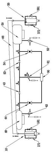 本发明涉及一种轨道车辆小幅倾摆调节系统及控制方法。包括:风缸、左空簧、右空簧、中调高阀、左气阀二、左气阀三、左限高阀、右气阀二、右气阀三及右限高阀;风缸通过中调高阀及左气阀二与左空簧连接、通过左气阀三与左空簧连接,并通过左限高阀排气;风缸通过中调高阀及右气阀二与右空簧连接、通过右气阀三与右空簧连接,并通过右限高阀排气。利用左限高阀控制左空簧的高度,利用右限高阀控制右空簧的高度,在不需要信号监测及反馈系统的条件下,能够控制两侧空簧的高差及倾摆角。能够利用轨道车辆现有的空簧系统实现轨道车辆的小幅倾摆,其结构简单、成本低,适用于现有轨道车辆改造,能够提高轨道车辆在曲线上行驶速度,提升运营效率。