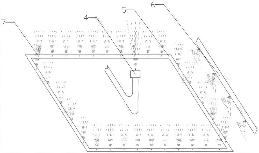 一种控制浇铸阳极板铜模变形的方法,包括以下步骤,A、生产母模B、冷却塑型。本方案对铜模底部循环冷却水的喷淋方式优化改进,除行业常用的只中心喷淋保留外,还优化增加底部方形环绕喷淋水,铜模尾部侧边喷淋水,确保铜模全方位喷淋冷却,防止铜模侧边开裂变形,防止铜模中心下沉变形。浇铸生产的铜模只需露天摆放失效足够时间后,即可使用,而不必采用其他辅助方式进行热应力失效处理,不增加任何处理费用;仅需优化改进铜模冷却水喷淋方式,增设几组喷淋水,成本低廉,效果却显著,对进一步控制浇铸阳极板铜模变形起到了关键性作用。