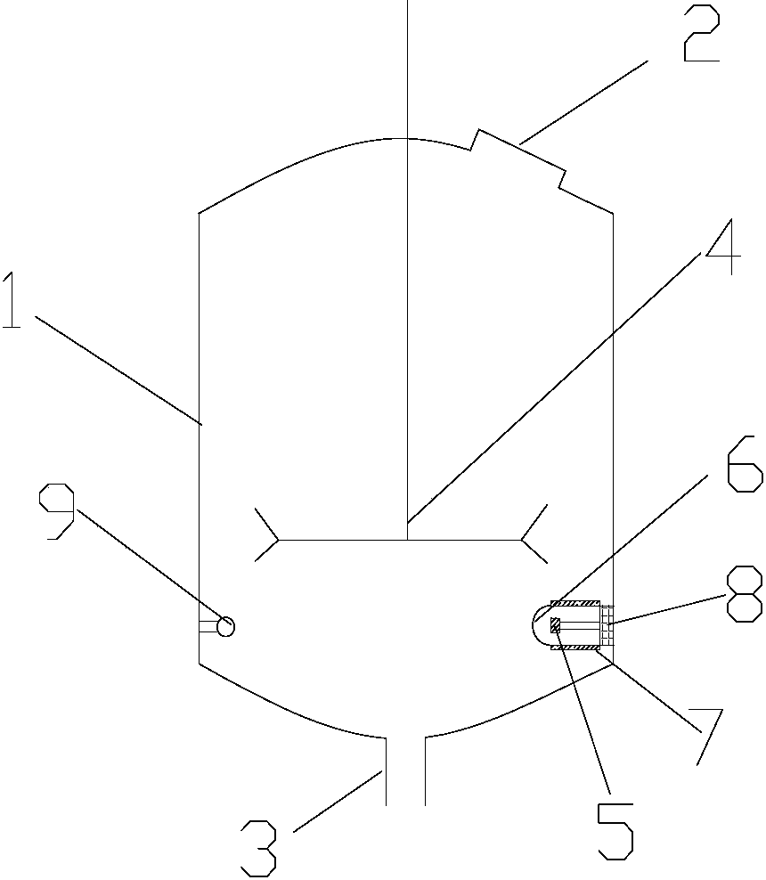 本实用新型涉及一种可以监测分散状态的分散桶,包括桶体、进料口、出料口、搅拌装置、光源、感光装置,感光装置包括光敏电阻、防水罩、黑色热缩管、绝缘块,分散桶的底部内壁设有光敏电阻,光敏电阻外设有防水罩,光敏电阻与防水罩与绝缘块固定连接,绝缘块固定连接在桶体内壁上,防水罩上套有黑色热缩管,在光敏电阻对侧的桶体内壁上设有光源。本实用新型根据光敏电阻返回的电信号可以判断粉体和液体的混合是否均匀,从而准确的控制粉体的送料速度和涂料的固含量等指标。